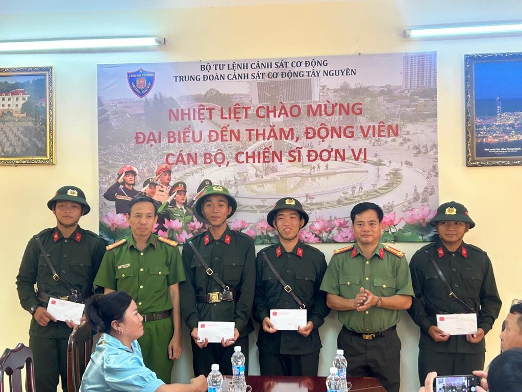 Để động viên tinh thần các chiến sĩ mới, đoàn công tác đã trao tặng các phần quà thiết thực cho 07 chiến sĩ cùng các phần quà lưu niệm cho đơn vị tuyển quân. Những món quà tuy nhỏ về vật chất nhưng mang giá trị tinh thần lớn lao, thể hiện sự quan tâm sâu sắc của cấp uỷ, chính quyền và nhân dân xã nhà đối với những người con ưu tú đang làm nhiệm vụ bảo vệ Tổ quốc.