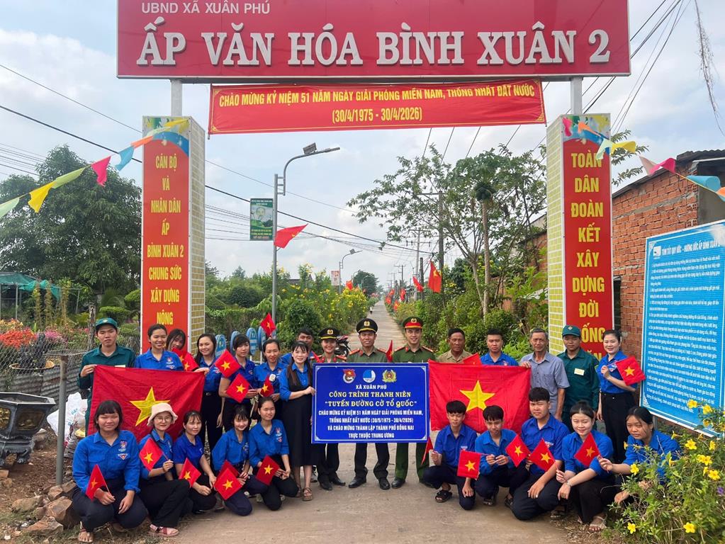 Sau lễ viếng, Chi đoàn Công an xã phối hợp với Đoàn Thanh niên và Hội Liên hiệp Thanh niên xã Xuân Phú tổ chức khánh thành công trình thanh niên “Tuyến đường cờ Tổ quốc” tại ấp Bình Xuân 1, xã Xuân Phú. Công trình mang ý nghĩa thiết thực trong việc khơi dậy lòng yêu nước, niềm tự hào dân tộc và ý thức trách nhiệm của người dân trong gìn giữ, phát huy truyền thống cách mạng. Đồng thời góp phần tạo cảnh quan sáng – xanh – sạch – đẹp, xây dựng hình ảnh địa phương văn minh, giàu bản sắc; phát huy vai trò xung kích của tuổi trẻ trong tham gia xây dựng nông thôn mới và bảo đảm an ninh trật tự trên địa bàn.