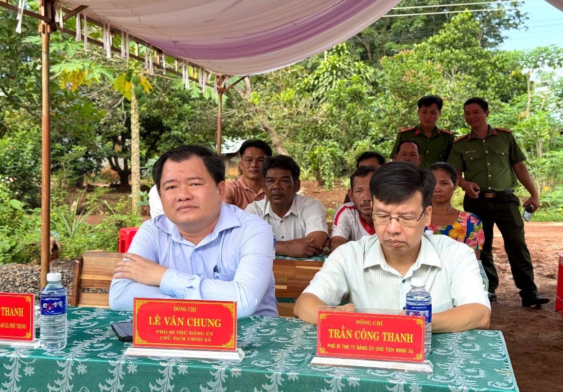 Tham dự buổi lễ có đồng chí Thượng tá Đoàn Thế Anh - Phó Trưởng phòng, Phòng Tổ chức cán bộ Công an tỉnh; ông Trần Công Thanh - Phó Bí thư Thường trực, Chủ tịch HĐND xã; ông Lê Văn Chung - Phó Bí thư, Chủ tịch UBND xã, ông Trần Văn Duẩn - Trưởng Công an xã; bà Nguyễn Thị Thanh -Chủ tịch Ủy ban MTTQ Việt Nam xã, đại diện các phòng, ban chuyên môn của xã, đại diện Ban điều hành, Bí thư chi bộ thôn cùng toàn thể Nhân dân thôn Bình Trung.