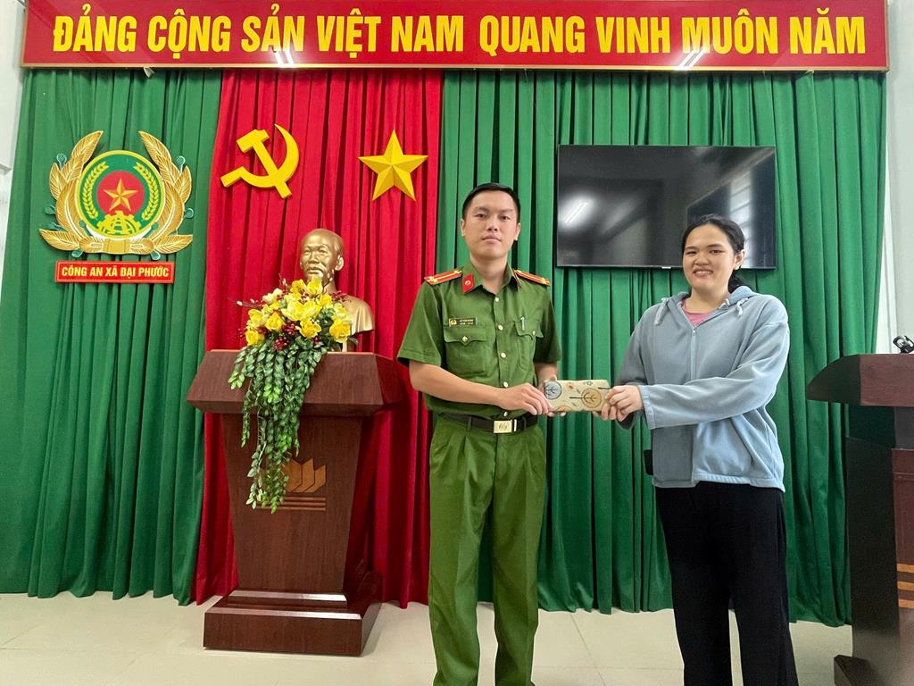 Công an xã Đại Phước trao trả tài sản cho chị Lê Thị Thanh Trúc