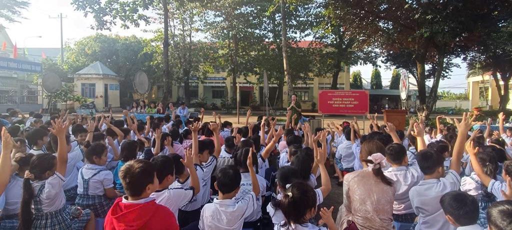 Công an xã Hưng Thịnh tuyên truyền an toàn giao thông và phòng chống xâm hại trẻ em tại Trường Tiểu học Nguyễn Tri Phương