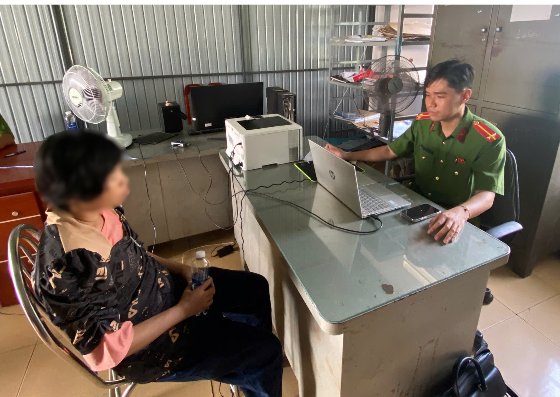 Công an xã động viên tinh thần chị Ng.