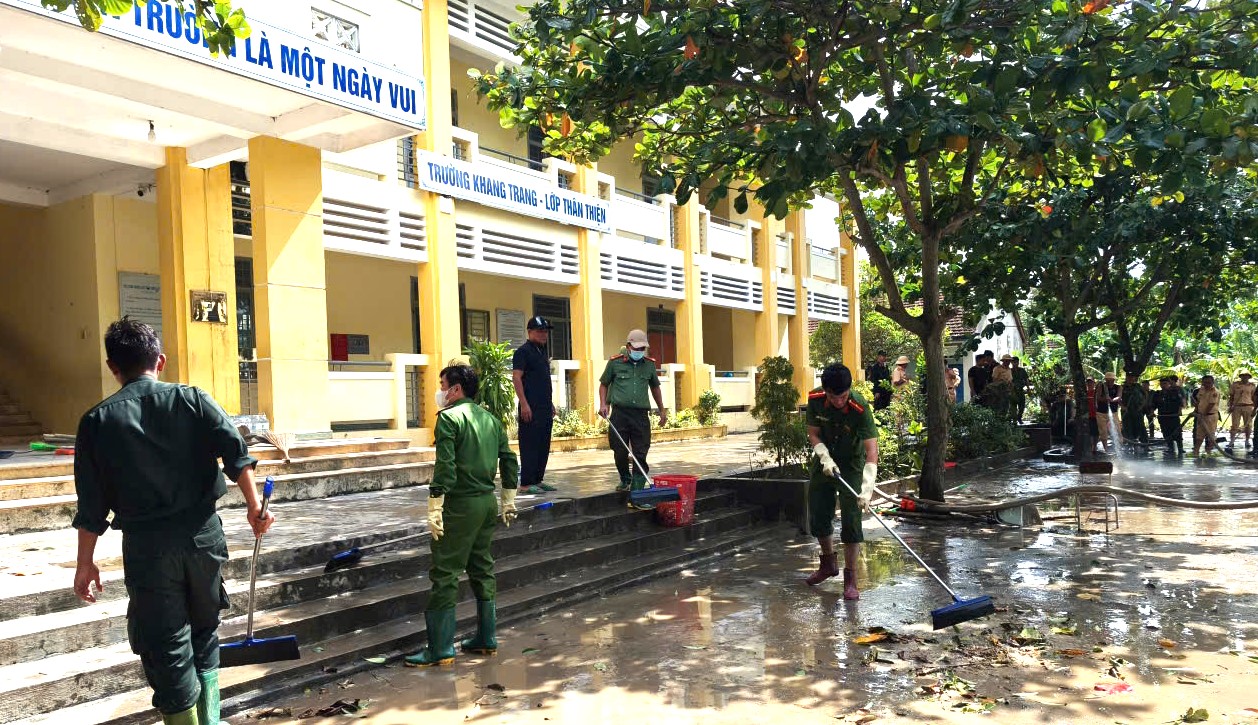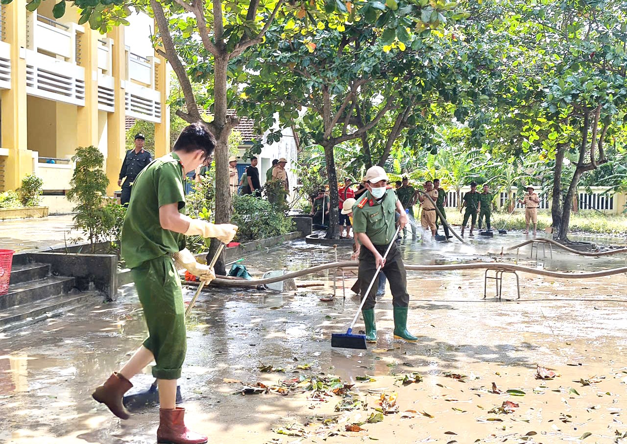 Tại các điểm trường còn khó khăn sau đợt mưa lũ, cán bộ, chiến sĩ Công an tỉnh Đồng Nai đã phân công ra thành 2 tổ công tác hỗ trợ dọn dẹp, vệ sinh trường lớp. Xuyên trưa dọn dẹp, 40 chiến sĩ ở tổ công tác số 1 đã vệ sinh xong các điểm trường học là Trường Tiểu học Hoà An, Trường Tiểu học Hoà An 1 thuộc khu phố Phú Ân và khu phố Vĩnh Phú, phường Tuy Hoà, tỉnh Đăk Lăk. Cùng với đó, tổ công tác số 2 với hơn 60 cán bộ chiến sĩ cũng đang tiếp tục hỗ trợ dọn dẹp các điểm trường tiểu học, mầm non trên địa bàn khu phố Phước Khánh, phường Tuy Hoà, tỉnh Đăk Lăk, giúp các trường học nhanh chóng ổn định trở lại và tạo môi trường học tập an toàn cho các em học sinh.