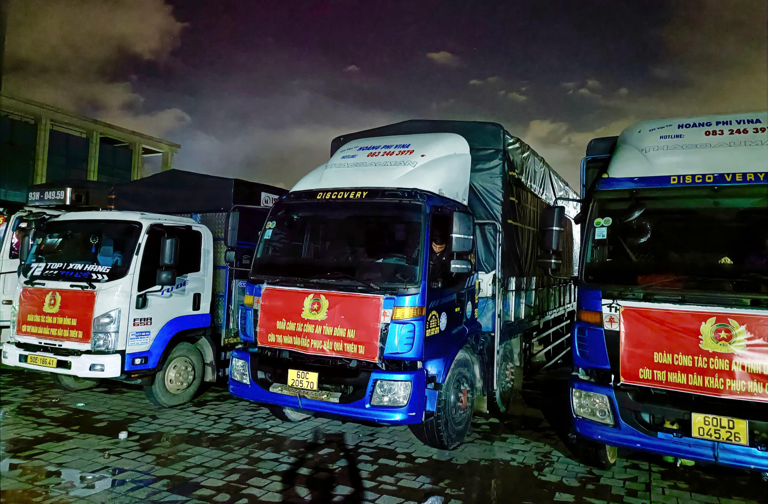 Ngoài việc hỗ trợ lực lượng trực tiếp giúp đỡ người dân tái thiết sau lũ, trong tối ngày 24/11, Công an tỉnh Đồng Nai cũng tiếp tục vận chuyển gần 200 tấn hàng cùng với 352 triệu đồng tiền mặt do các đơn vị, tổ chức, cá nhân trên địa bàn tỉnh ủng hộ, nâng tổng số hàng hỗ trợ trong đợt này lên 320 tấn hàng. Đây là lượng hàng hoá lớn được huy động trong thời gian ngắn, thể hiện tinh thần sẻ chia sâu sắc của các tổ chức, cá nhân trên địa bàn với đồng bào vùng lũ.