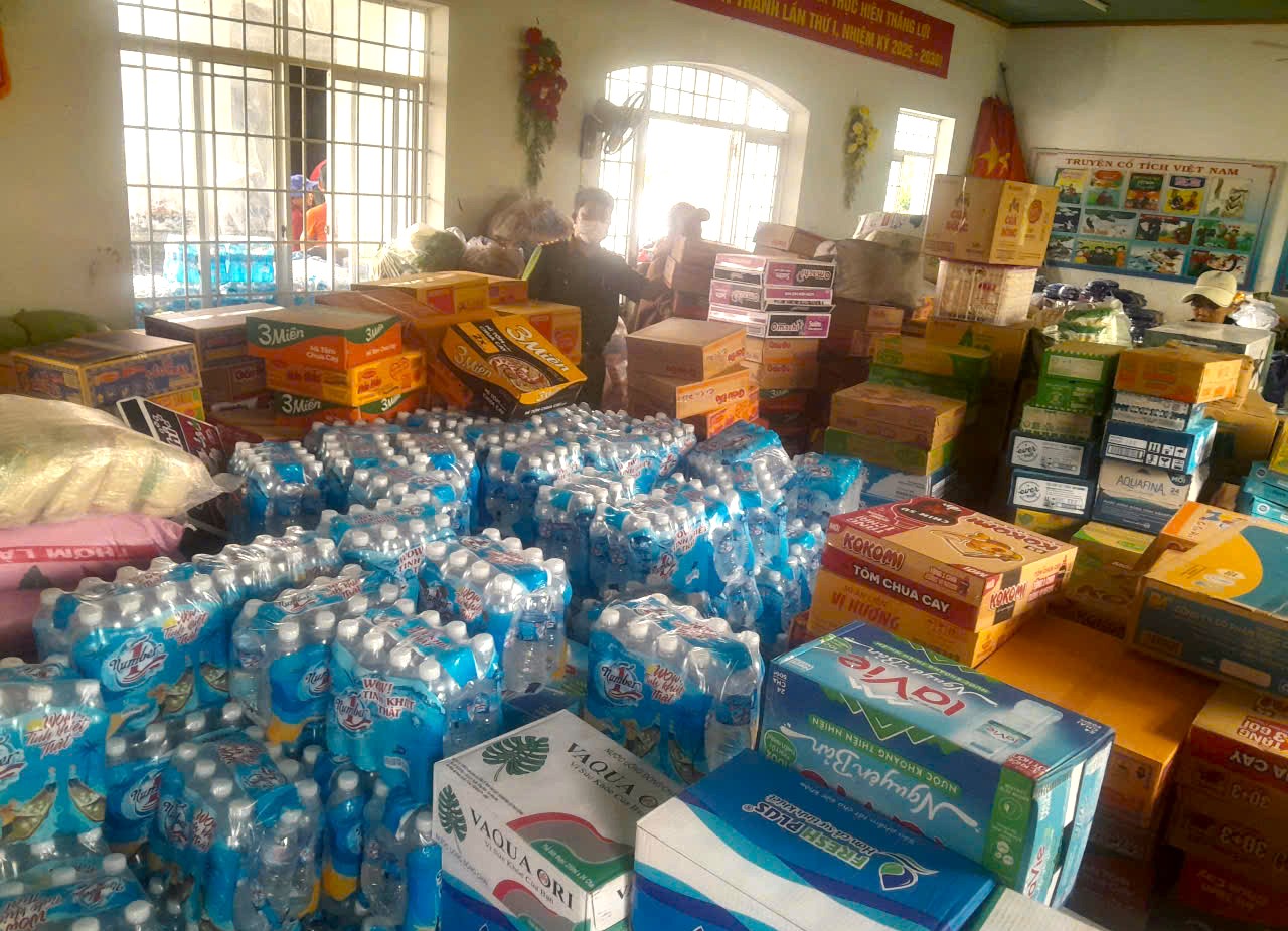 Những chuyến xe chở hàng hóa cứu trợ của Công an tỉnh Đồng Nai tiếp tục đến điểm tập kết và được Tổ công tác phân loại sẵn sàng trao tận tay Nhân dân vùng lũ