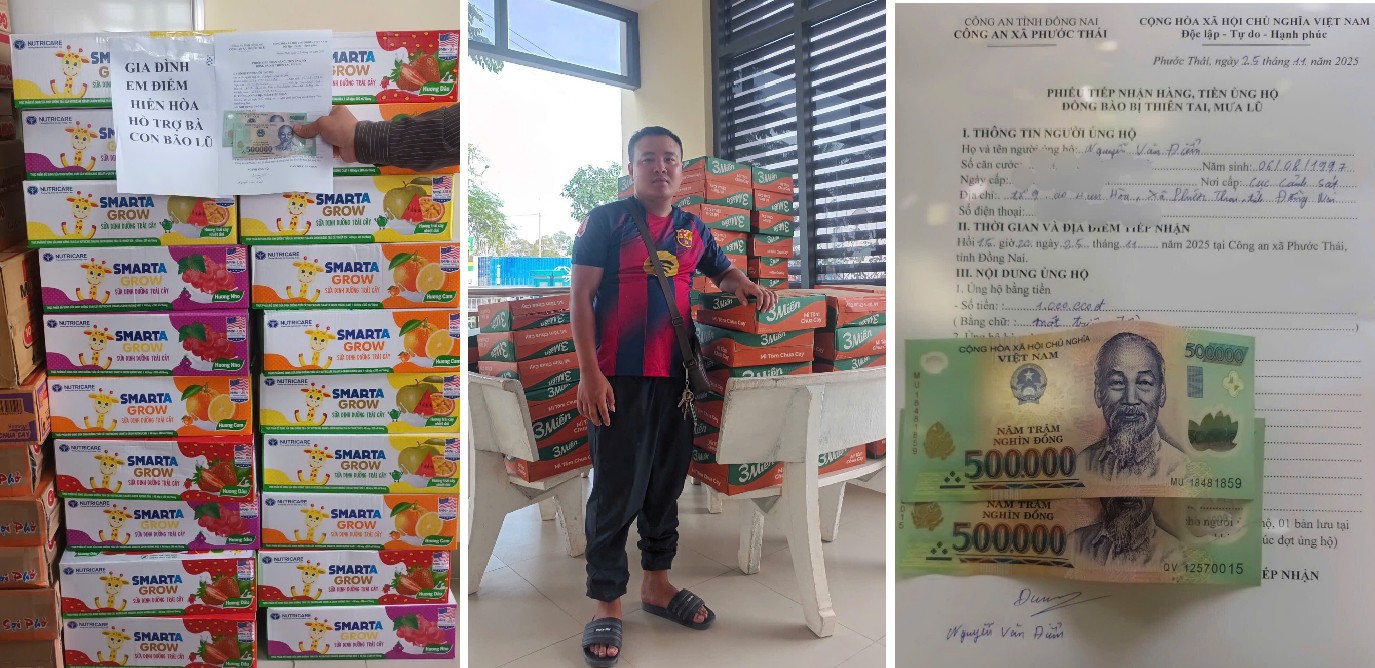 Trong gần 03 ngày vận động, kêu gọi ủng hộ, tính đến ngày 27/11/2025, Công an xã Phước Thái đã tiếp nhận 171.500.000đ tiền mặt, 775kg gạo, 190 thùng mì, 240 phần ăn chia sẵn, 38 bao quần áo và rất nhiều nhu yếu phẩm cần thiết khác như: Nước suối, sữa, hạt nêm, cá hộp, nước tương…