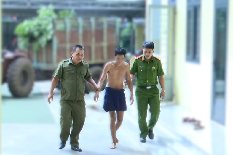 Tổ phó Tổ ANTT Nguyễn Tấn Phương (bìa trái) hỗ trợ Công an xã áp giải đối tượng gây mất ANTT địa phương lên trụ sở làm việc