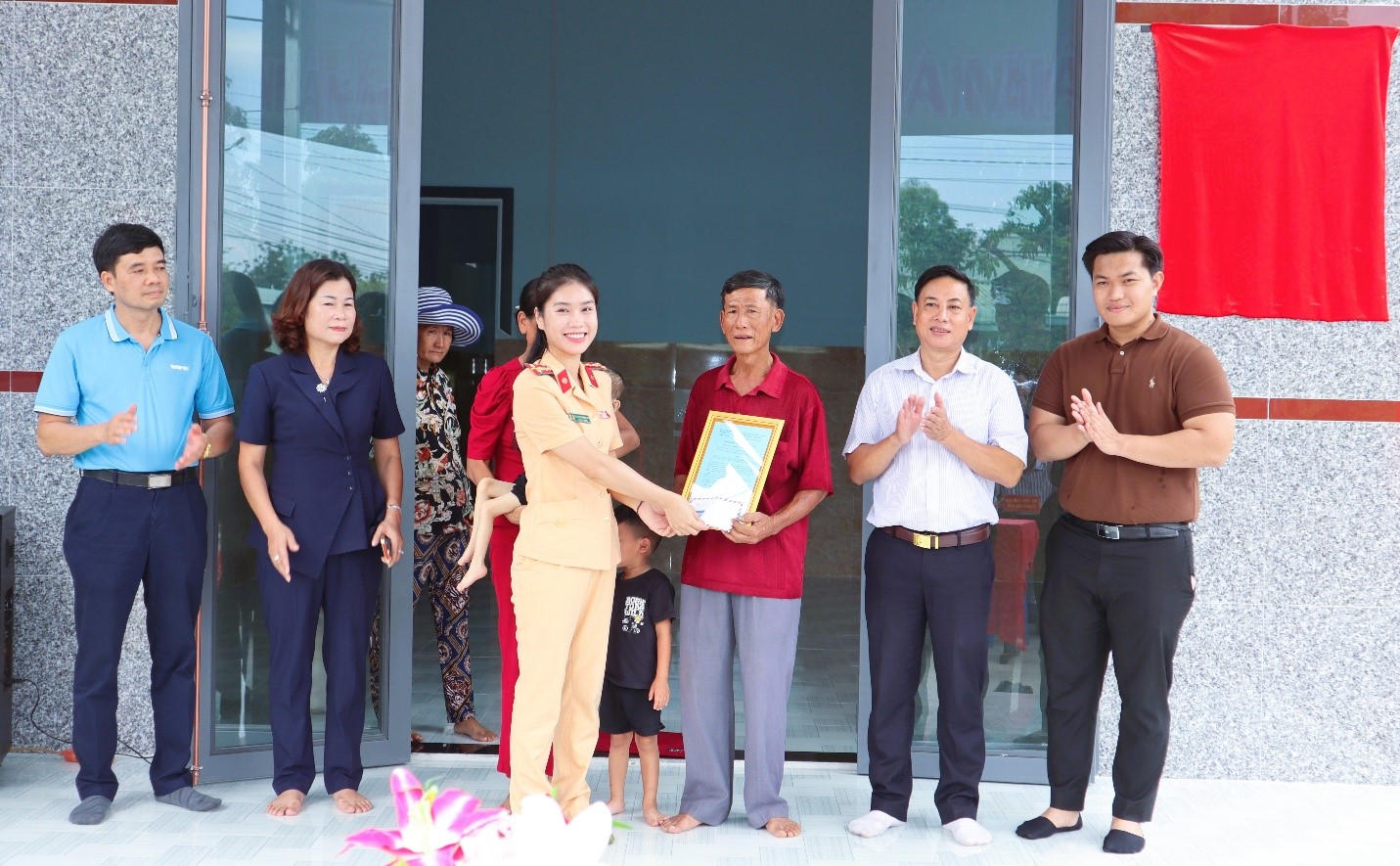Đại diện Phòng CSGT trao tặng quà cho gia đình ông Sáng tại buổi lễ bàn giao nhà