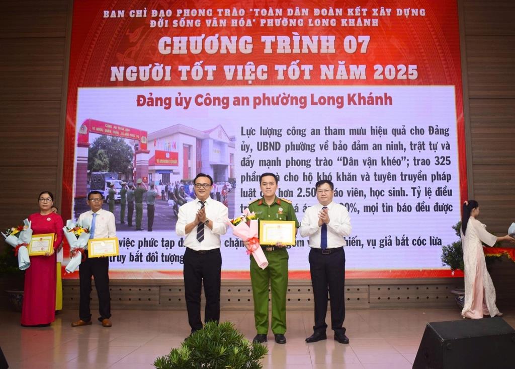 Với những thành tích nổi bật nêu trên, Đảng bộ Công an phường Long Khánh vinh dự là 1 trong 7 tập thể tiêu biểu được lựa chọn tuyên dương, khen thưởng gương “Người tốt, việc tốt” năm 2025 tại Hội nghị tổng kết Chương trình 7 của phường Long Khánh, góp phần lan tỏa những giá trị tích cực, cổ vũ phong trào thi đua “Vì an ninh Tổ quốc” trên địa bàn.