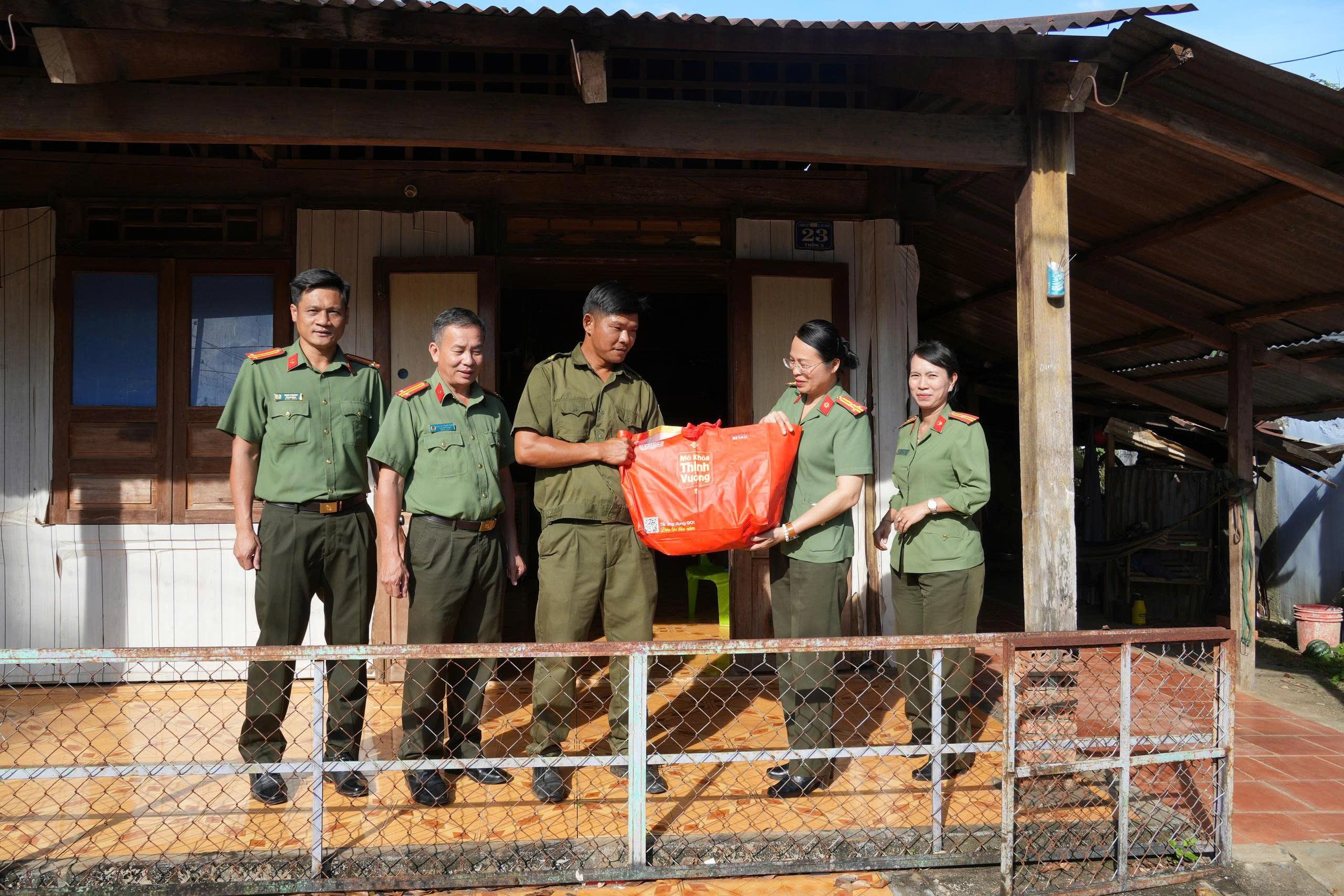 Đồng chí Trưởng phòng An ninh Chính trị nội bộ và các thành viên tặng quà cho gia đình đồng chí Nguyễn Thành Long.