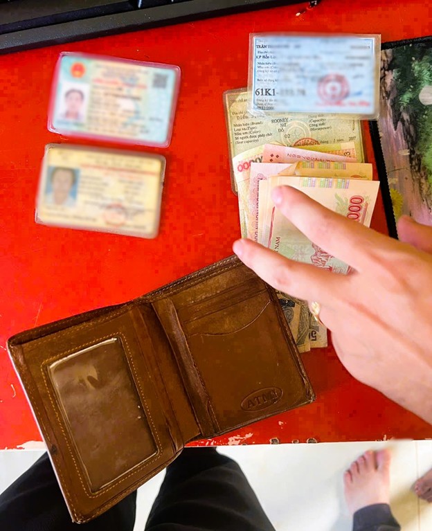 Chiếc bóp và số tài sản mà anh Nguyễn Đình Sáu đã nhặt được