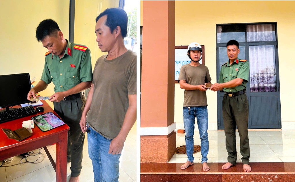 Cán bộ Công an xã kiểm tra và trao trả tài sản mà anh Trần Kim Anh đã đánh rơi