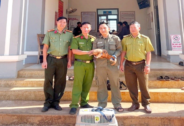 Công an xã tiếp nhận cá thể Tê tê.