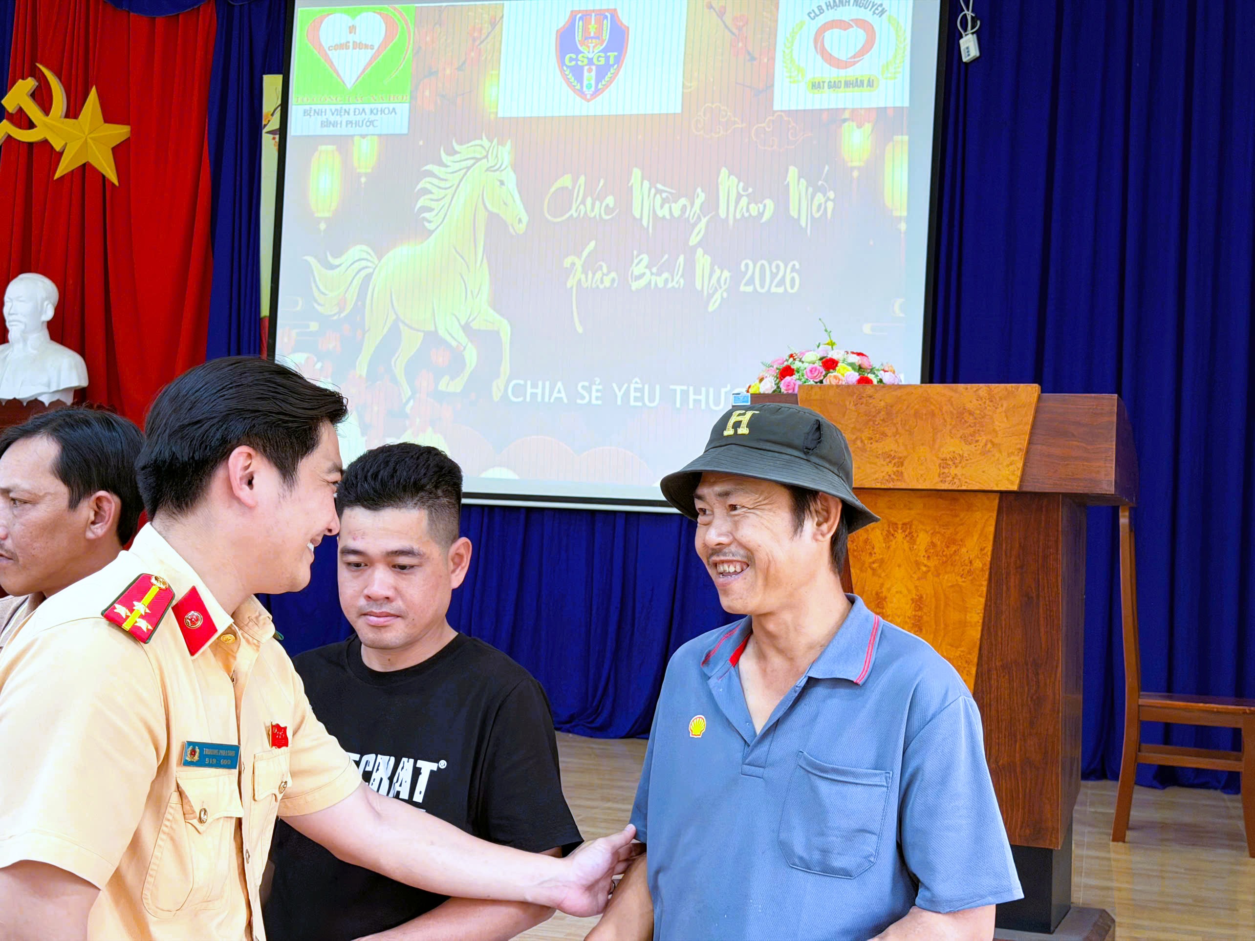 Chiều ngày 10/02, Đoàn Thanh niên - Hội Phụ nữ Phòng Cảnh sát giao thông (CSGT) Công an tỉnh Đồng Nai đã phối hợp cùng Câu lạc bộ Hạt gạo nhân ái và Bệnh viện đa khoa Đồng Nai (khu vực 2) tổ chức chương trình thăm hỏi, trao tặng quà cho các bệnh nhân có hoàn cảnh khó khăn đang điều trị tại bệnh viện.