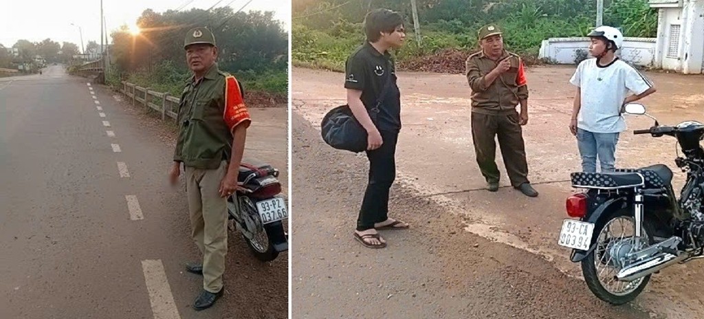 Ông Thảo trong 1 lần tuần tra, nhắc nhở 2 thanh niên chấp hành Luật giao thông đường bộ