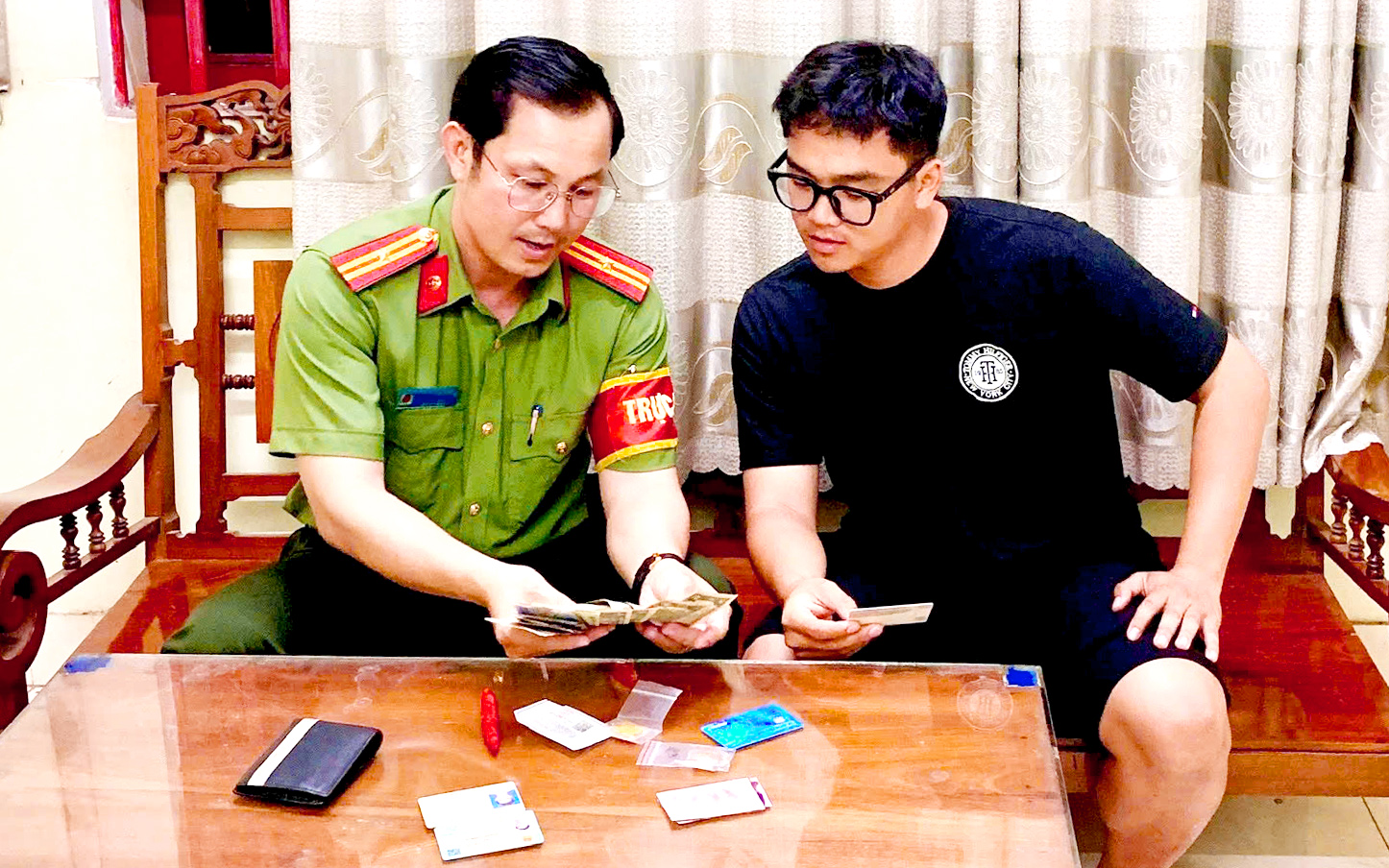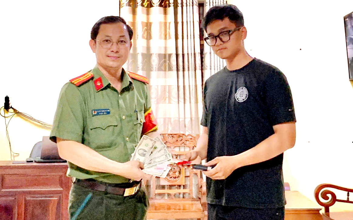 Tại trụ sở Công an phường Bình Phước, sau khi đối chiếu thông tin, xác nhận đúng chủ sở hữu, Thiếu tá Nguyễn Thanh Phương đã tiến hành trao trả chiếc ví với đầy đủ giấy tờ và tài sản liên quan cho anh Thành.