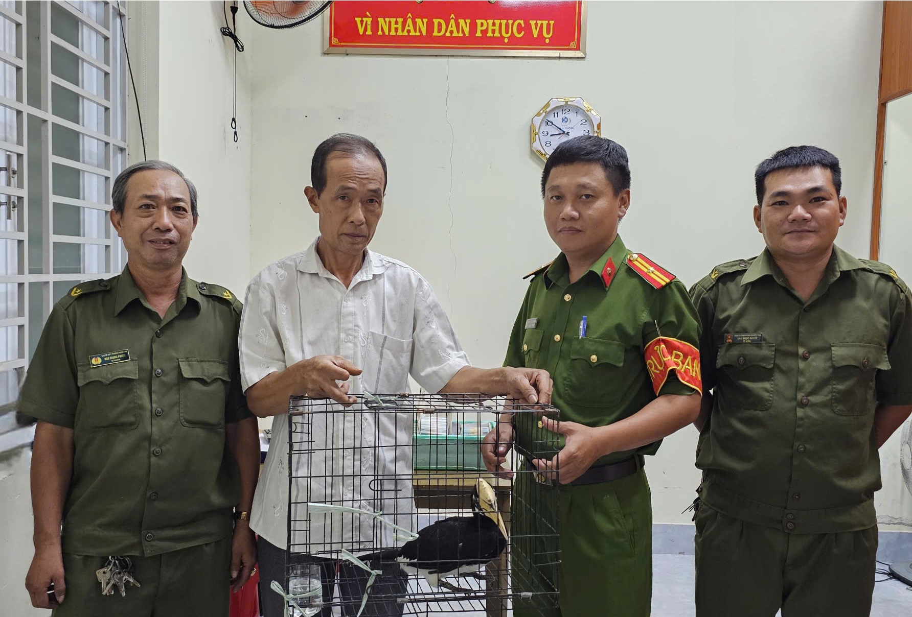 Người dân tự nguyện giao nộp cá thể chim quý hiếm cho Công an phường Phước Tân