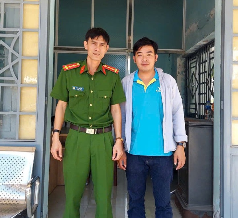 Công an xã Nghĩa Trung hỗ trợ người dân tìm lại tài sản đánh rơi.