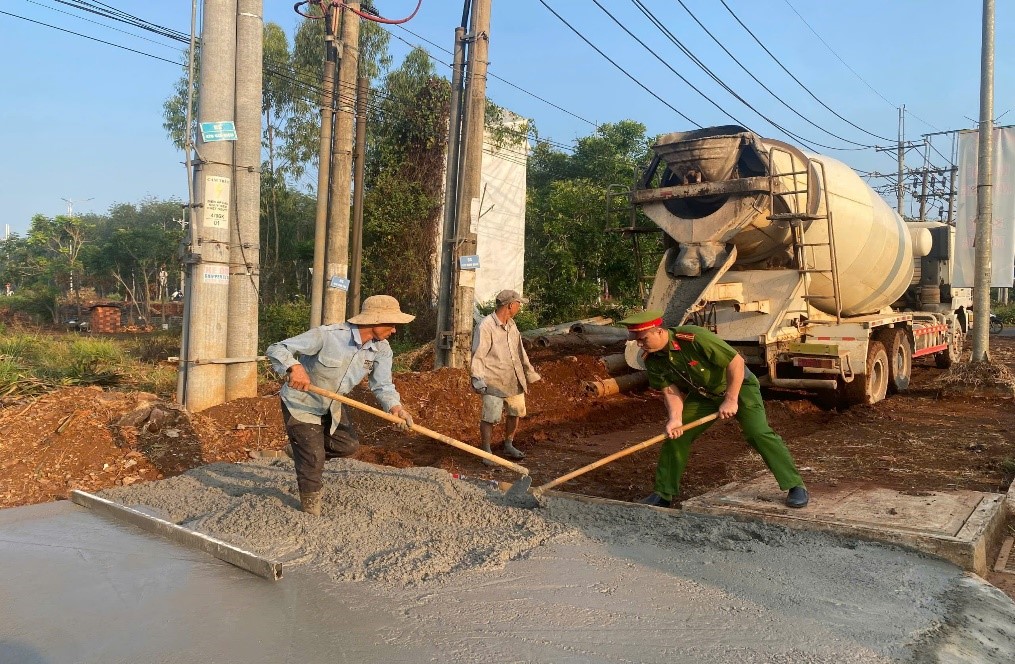 Ngày 31/3/2026, Công an xã đã huy động cán bộ, chiến sĩ cùng lực lượng an ninh cơ sở trực tiếp tham gia đổ bê tông làm vỉa hè. Công trình tuy giản dị nhưng chứa đựng tinh thần trách nhiệm, sự tận tụy và vì Nhân dân phục vụ của lực lượng Công an cơ sở.