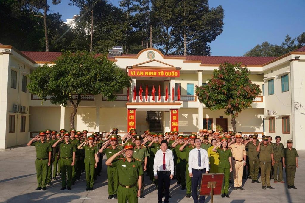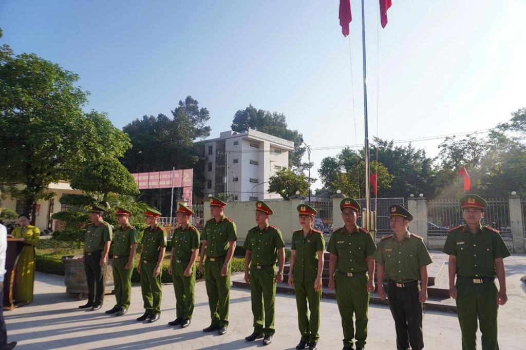 Toàn cảnh buổi lễ chào cờ đầu tháng của Công an xã Long Thành