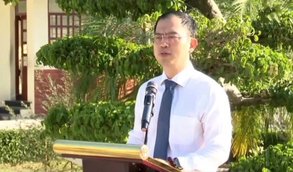 Đồng chí Lê Hoàng Sơn - Phó Bí thư Đảng ủy, Chủ tịch UBND xã Long Thành phát biểu tại buổi lễ