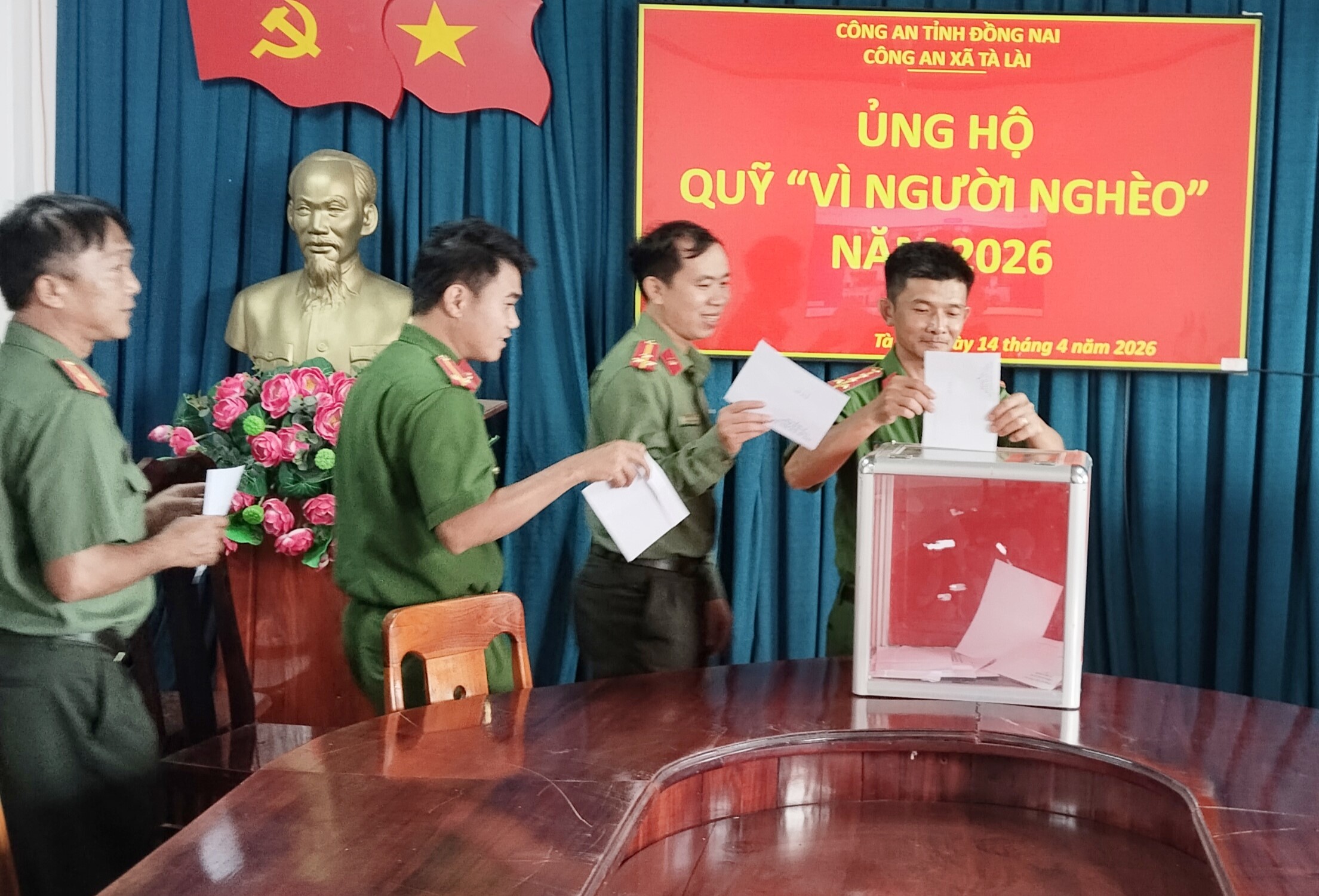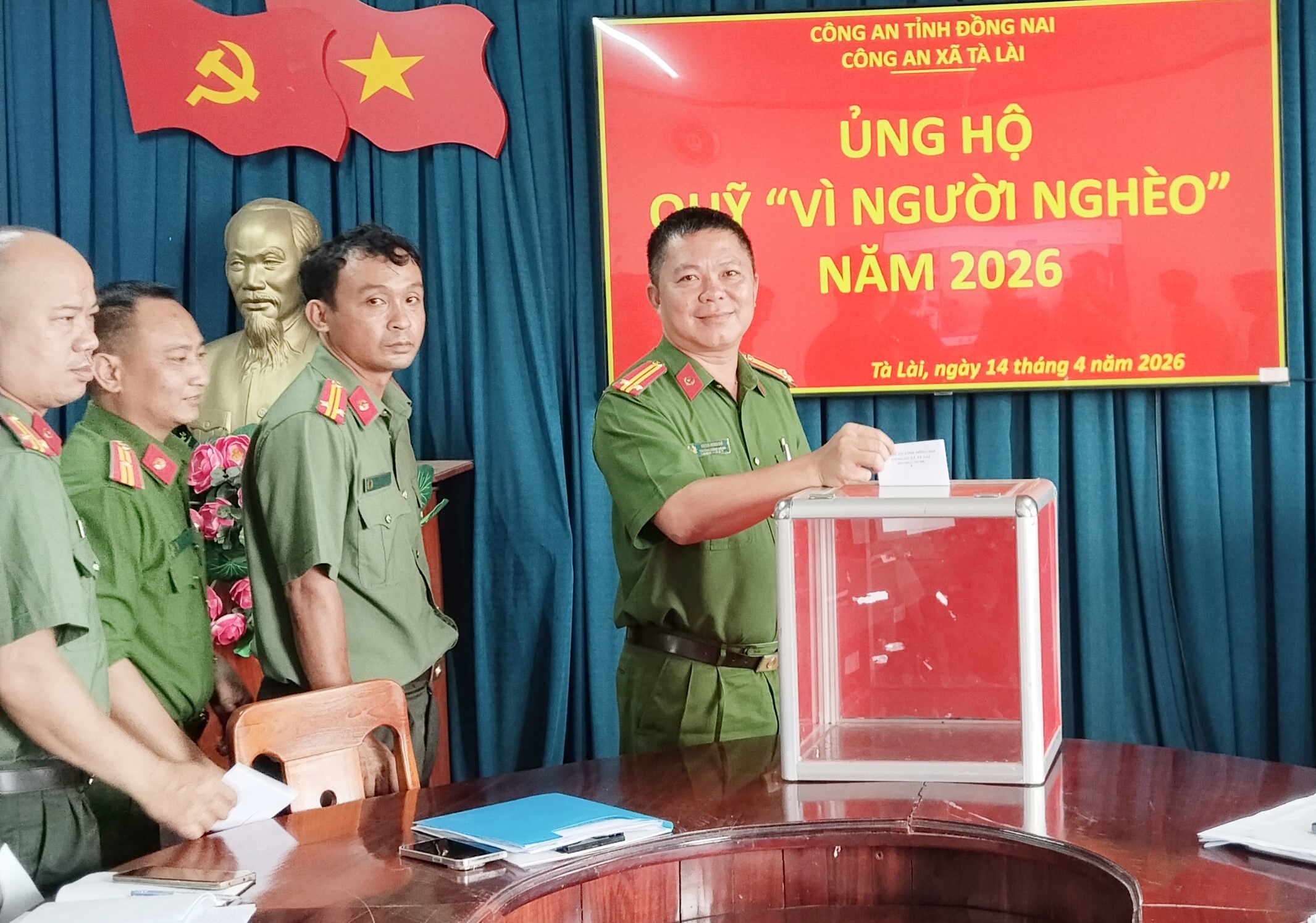 Hưởng ứng cuộc vận động của Ủy ban Trung ương Mặt trận Tổ quốc Việt Nam, Công an xã Tà Lài đã tổ chức quyên góp ủng hộ Quỹ “Vì người nghèo” trên địa bàn.