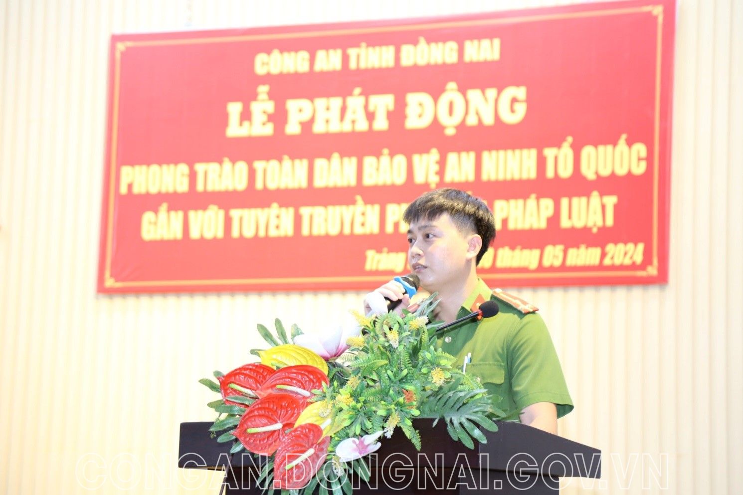 Tham dự buổi phát động, có đồng chí Trung tá Huỳnh Văn Tấn Đông – Phó trưởng phòng Tham mưu Công an tỉnh; đại diện cấp uỷ, chính quyền và đông đảo bà con nhân dân là các chủ nhà trọ trên địa bàn phường Trảng Dài.
