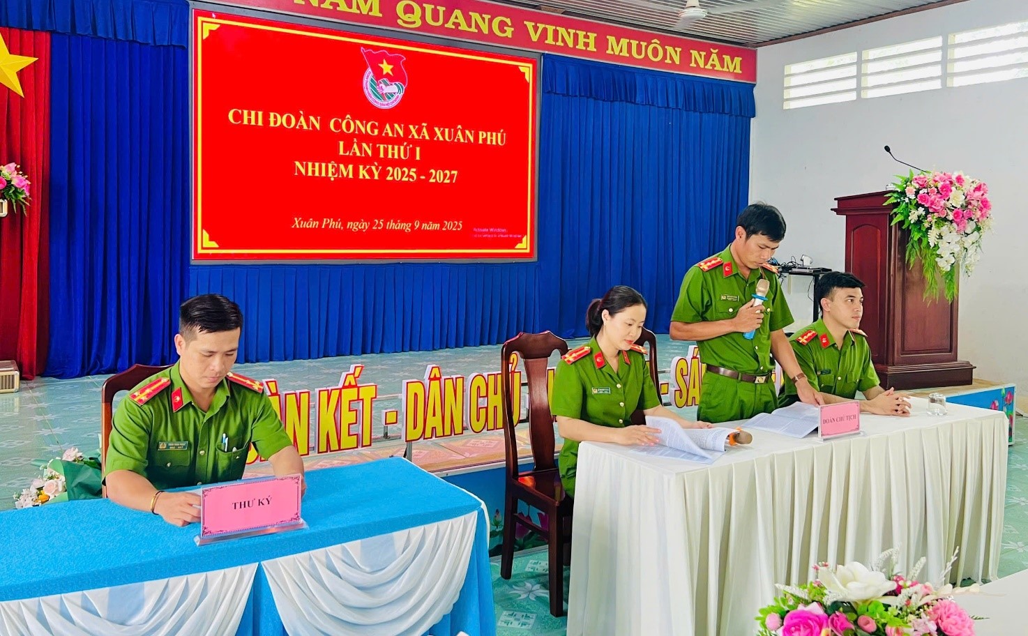 Diễn ra trong không khí làm việc tập trung và nghiêm túc, Đại hội đã thống nhất bầu Ban Chấp hành chi đoàn Công an xã Xuân Phú khóa I, nhiệm kỳ 2025 - 2027 gồm 3 đồng chí. Trong đó, đồng chí Đại úy Cao Xuân Chung, giữ chức vụ Bí thư chi đoàn, đồng chí Thượng uý Lê Thị Hoài Thanh, Phó Bí thư chi đoàn và đồng chí Đại úy Lê Minh Hiếu, Ủy viên Ban Chấp hành chi đoàn. Đặc biệt, đồng chí Bí thư chi đoàn nằm trong cấp uỷ chi bộ, giữ chức vụ Phó Trưởng Công an xã, điều này giúp cho việc kiểm tra, hướng dẫn, đôn đốc thực hiện, duy trì các chương trình về công tác Thanh niên của Công an xã Xuân Phú được quan tâm, hoạt động có hiệu quả và phát huy cao sự chỉ đạo của cấp uỷ trong phong trào Thanh niên.