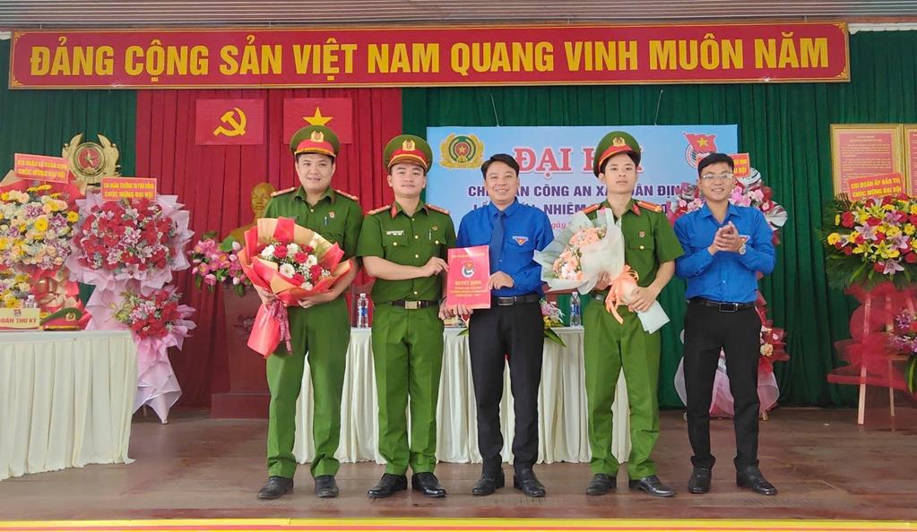 trao quyết định, tặng hoa chúc mừng BCH Chi đoàn Công an xã nhiệm kỳ 2025-2027