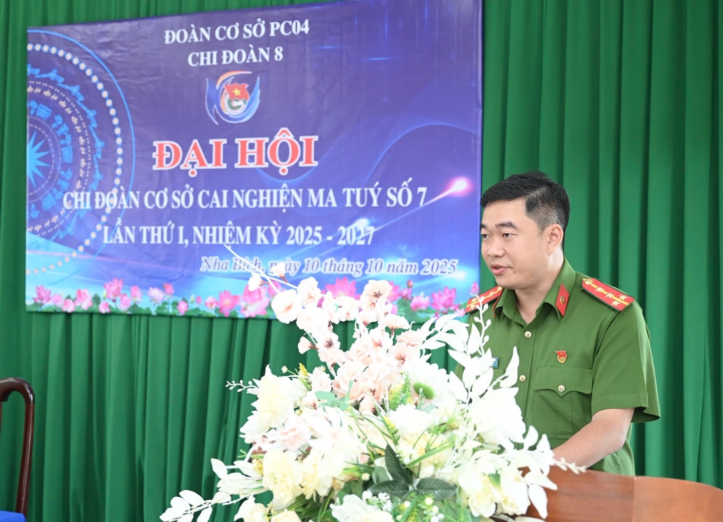 Phát biểu tại Đại hội, Đại uý Hà Thân Trọng - Bí thư Chi bộ, Trưởng Cơ sở Cai nghiện ma tuý số 7 đã đưa ra những ý kiến chỉ đạo, định hướng quan trọng. Đồng chí Bí thư Chi bộ mong rằng Ban Chấp hành mới sẽ phát huy nhiệt huyết, sáng tạo, gắn hoạt động Đoàn với nhiệm vụ, để mỗi phong trào đều thiết thực, hiệu quả.