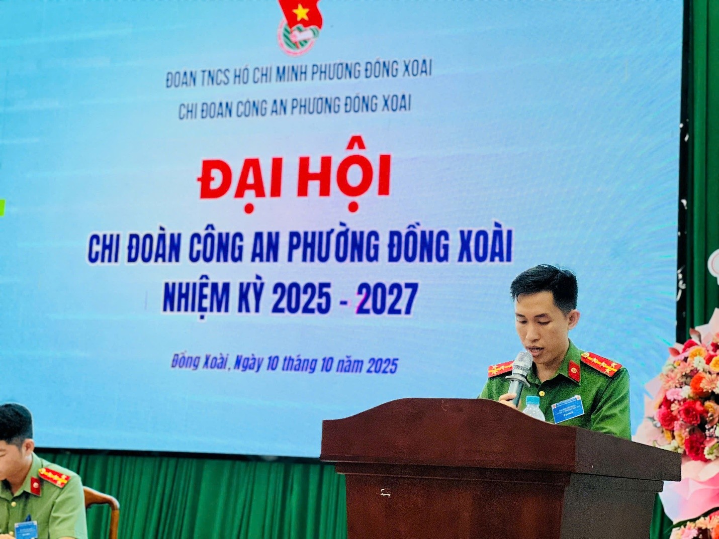 Đ/c Lê Thái Hoà – thay mặt BCH Chi đoàn lâm thời phát biểu khai mạc Đại hội Chi đoàn Công an phường lần thứ I, nhiệm kỳ 2025-2027