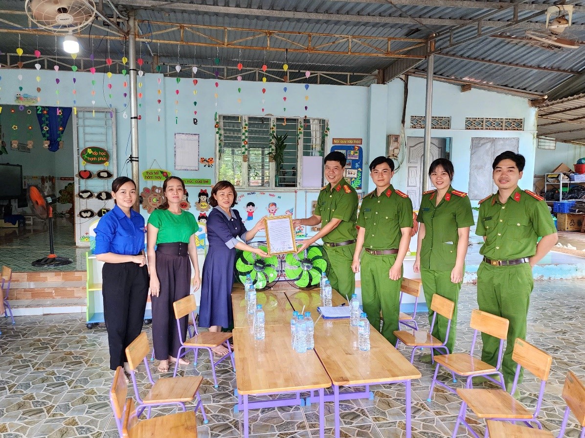 Chi đoàn đã trao tặng 6 mành trúc che nắng, 2 kệ sách, 2 quạt treo tường. Những phần quá trên tuy giá trị về vật chất không lớn, nhưng thể hiện tấm lòng, tình cảm, trách nhiệm của tuổi trẻ Công an xã Trị An với thế hệ tương lai của đất nước, giúp các em tại điểm trường cải thiện điều kiện học tập, sinh hoạt, tránh nắng gắt, đảm bảo sức khỏe, tạo không gian đọc sách, khơi gợi tinh thần ham học và thói quen đọc sách từ sớm.