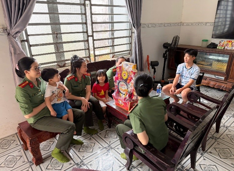 Tại gia đình cháu Phạm Gia Huy, đoàn công tác đã ân cần thăm hỏi tình hình sức khỏe, việc học tập và sinh hoạt của cháu trong năm vừa qua. Thay mặt đoàn, đại diện lãnh đạo hai đơn vị đã trao tặng suất quà Tết bao gồm nhu yếu phẩm, bánh mứt...và hỗ trợ kinh phí đỡ đầu để gia đình chuẩn bị cho cháu một cái Tết đủ đầy hơn. Đây là hoạt động thường niên nằm trong chương trình “Mẹ đỡ đầu” và “Con nuôi Công an” do Hội Phụ nữ và Đoàn Thanh niên triển khai, nhằm tiếp sức cho các em nhỏ có hoàn cảnh khó khăn vươn lên trong cuộc sống. Dù điều kiện gia đình còn nhiều khó khăn, nhưng với sự đồng hành sát sao của cán bộ chiến sĩ hai đơn vị, cháu Phạm Gia Huy đã có nhiều nỗ lực trong học tập, là con ngoan trò giỏi.