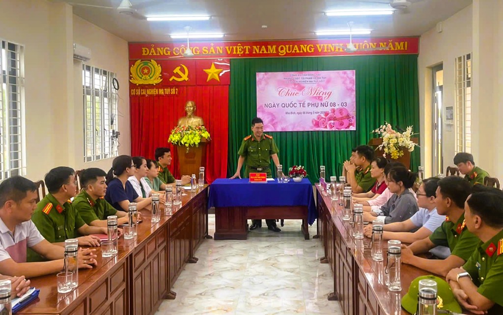 Phát biểu tại buổi họp mặt, Ban chỉ huy đơn vị ghi nhận và biểu dương những nỗ lực, đóng góp của cán bộ, hội viên phụ nữ trong thực hiện nhiệm vụ chuyên môn, đặc biệt là trong công tác quản lý, giáo dục, giúp đỡ người nghiện ma túy cai nghiện, tái hòa nhập cộng đồng. Đồng thời mong muốn thời gian tới, cán bộ, hội viên phụ nữ của đơn vị tiếp tục phát huy truyền thống tốt đẹp của phụ nữ Việt Nam, không ngừng học tập, rèn luyện, nâng cao trình độ chuyên môn nghiệp vụ, hoàn thành tốt mọi nhiệm vụ được giao.