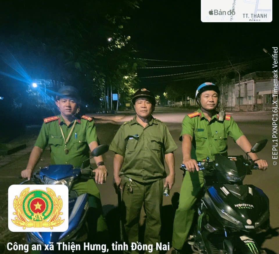Công an xã Thiện Hưng và xã Bù Gia Mập tuần tra bảo đảm ANTT khu vực vùng biên