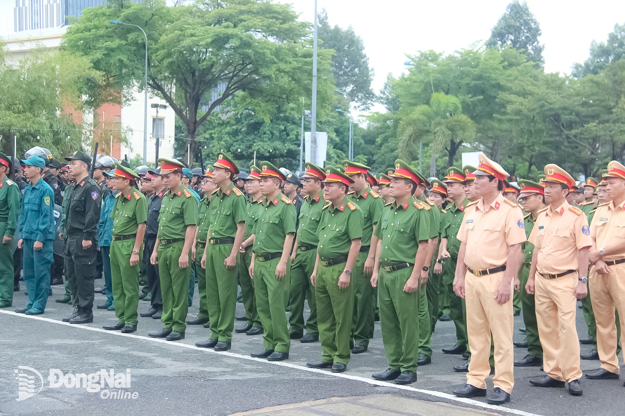 Lãnh đạo Công an tỉnh tại Lễ ra quân bảo vệ Đại hội đại biểu Đảng bộ tỉnh Đồng Nai lần thứ I, nhiệm kỳ 2025-2030. Ảnh: Trần Danh
