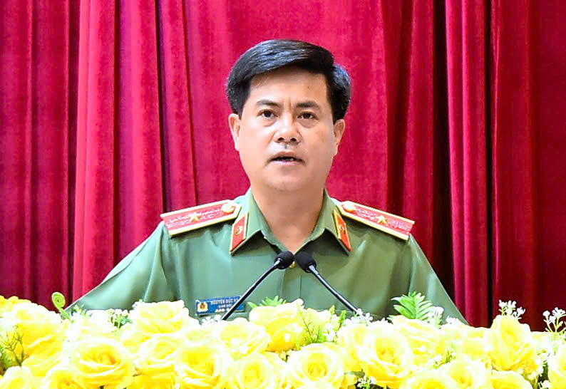 Đồng chí Thiếu tướng Nguyễn Đức Hải - UVBTV Tỉnh ủy, Bí thư Đảng ủy, Giám đốc Công an tỉnh phát biểu chỉ đạo tại Hội nghị