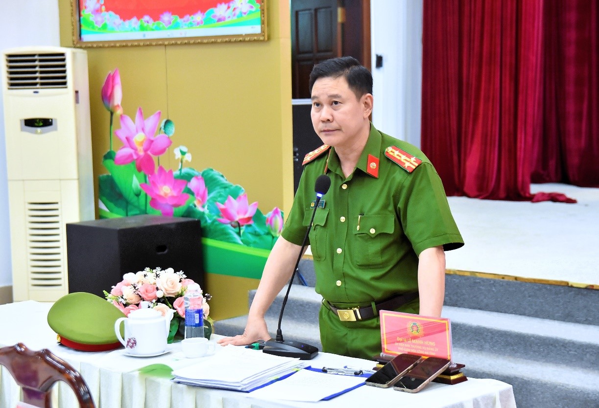 Đồng chí Đại tá Lê Mạnh Hùng - Phó Giám đốc, Thủ trưởng CQCSĐT Công an tỉnh phát biểu điều hành tham luận tại Hội nghị