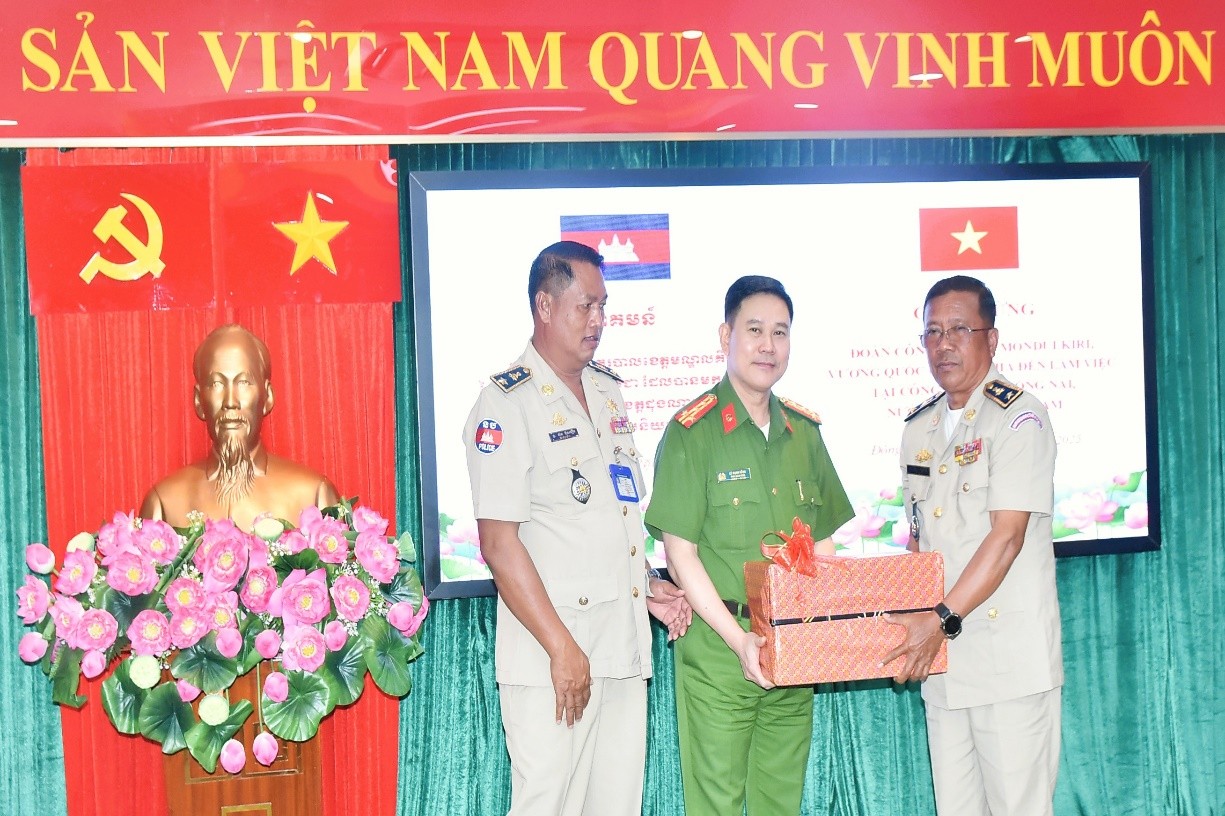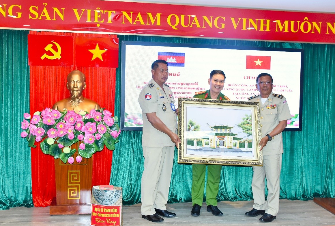 Đoàn Công an tỉnh Mondulkiri (Vương quốc Campuchia) tặng quà Đảng ủy, Ban Giám đốc Công an tỉnh Đồng Nai