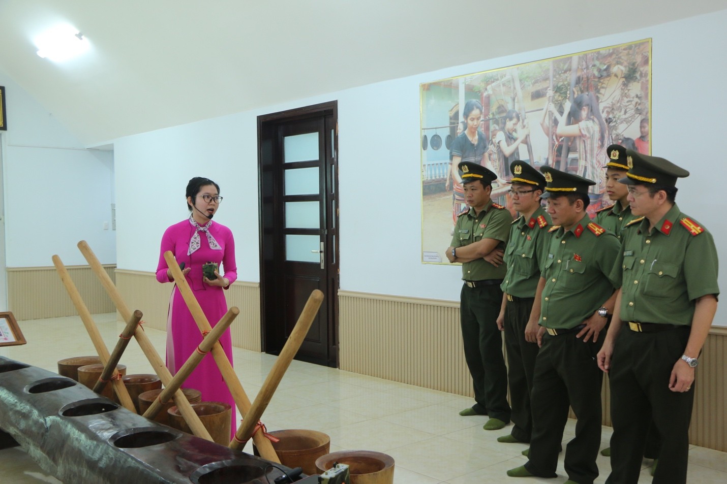 Đoàn tham quan, tìm hiểu hiện vật trưng bày tại Khu bảo tồn văn hoá dân tộc S’tiêng Sóc Bom Bo