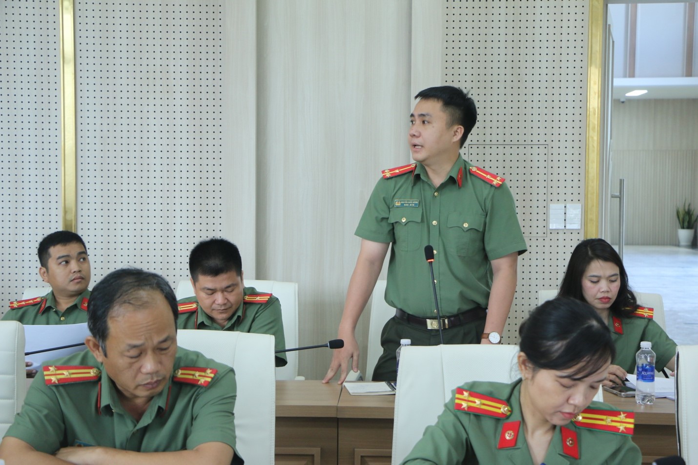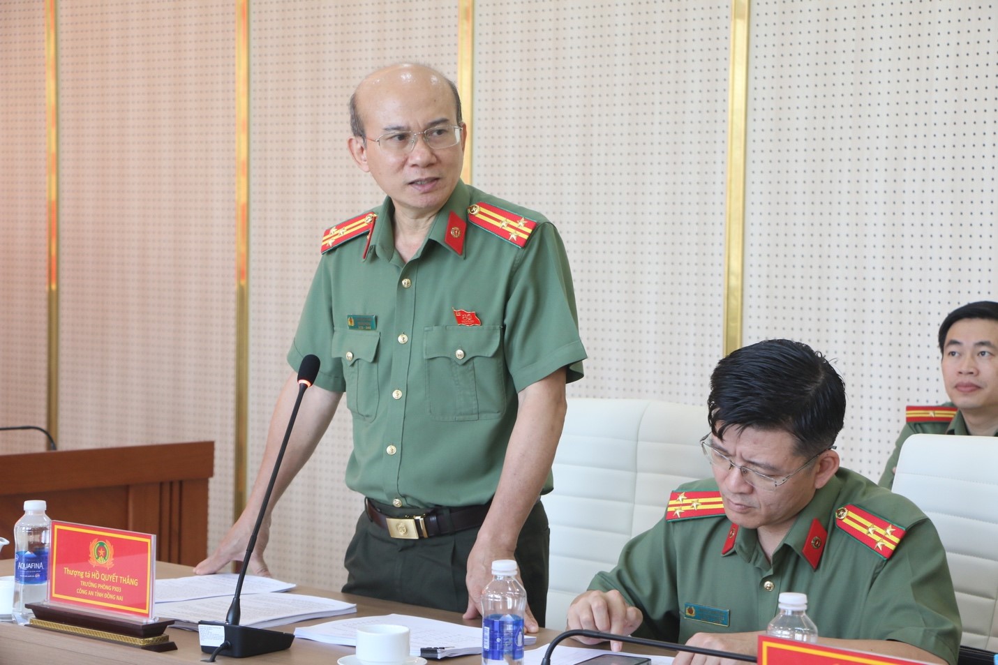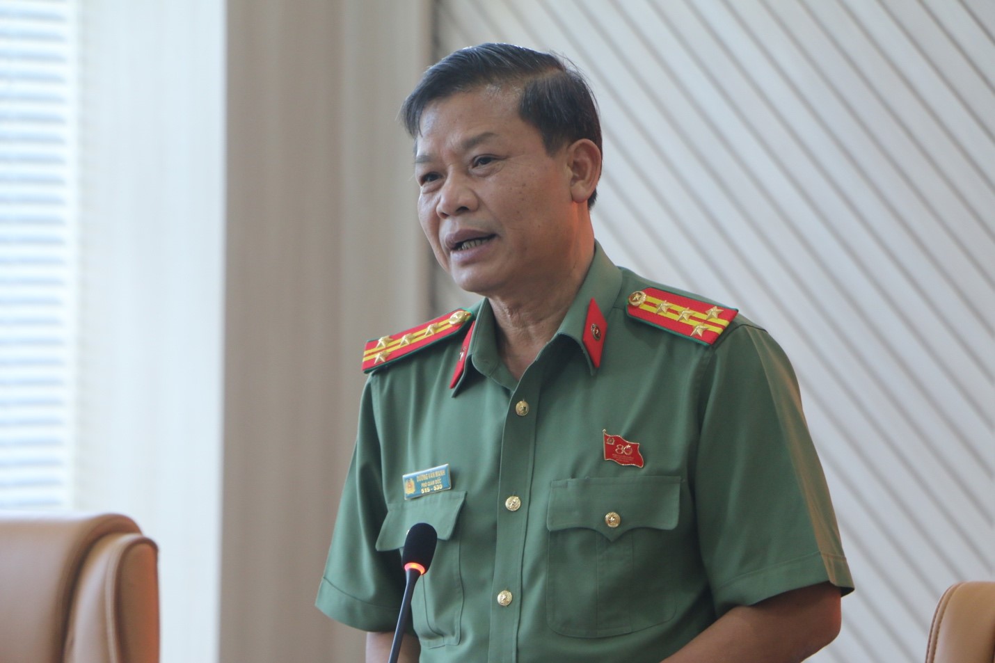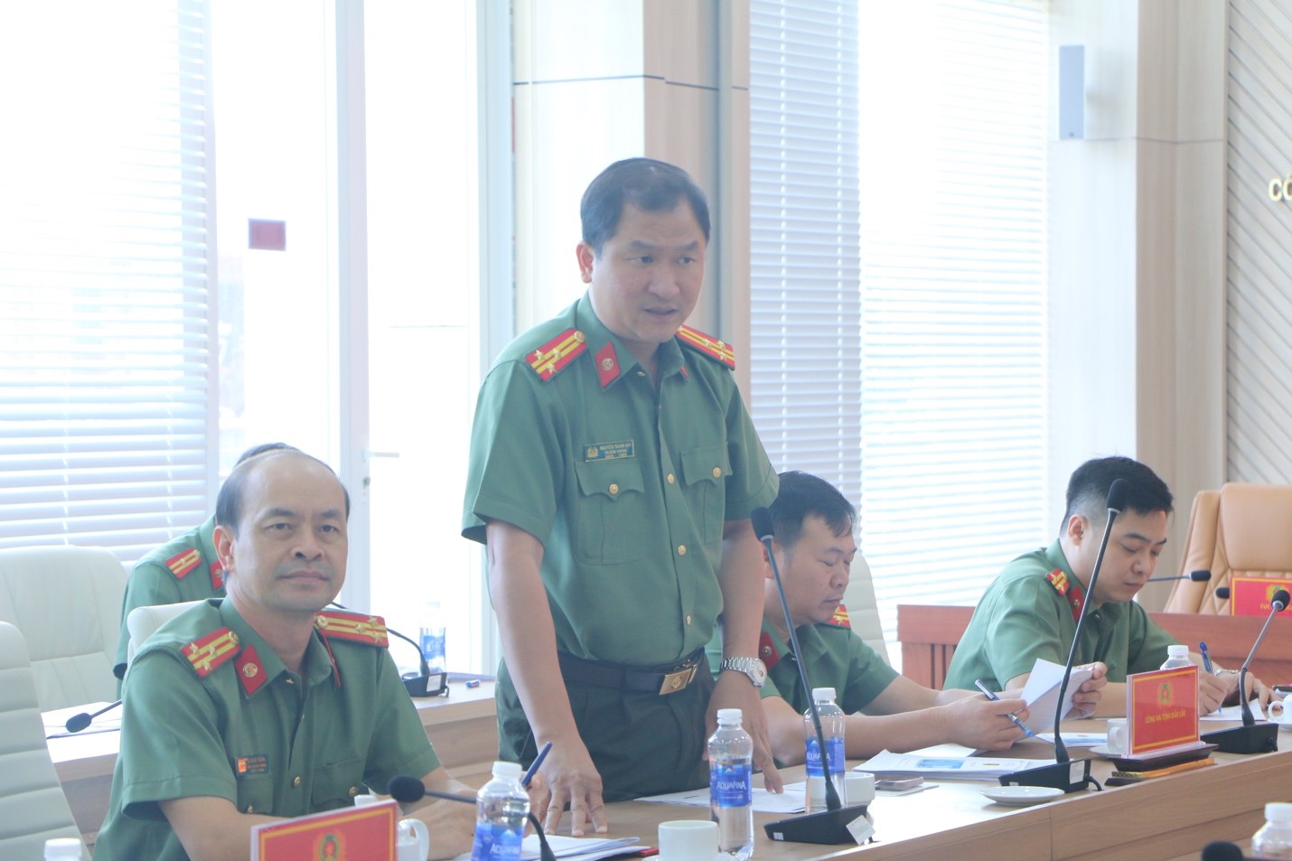 Đại tá Dương Văn Mạnh, Phó Giám đốc Công an tỉnh phát biểu tại cuộc họp