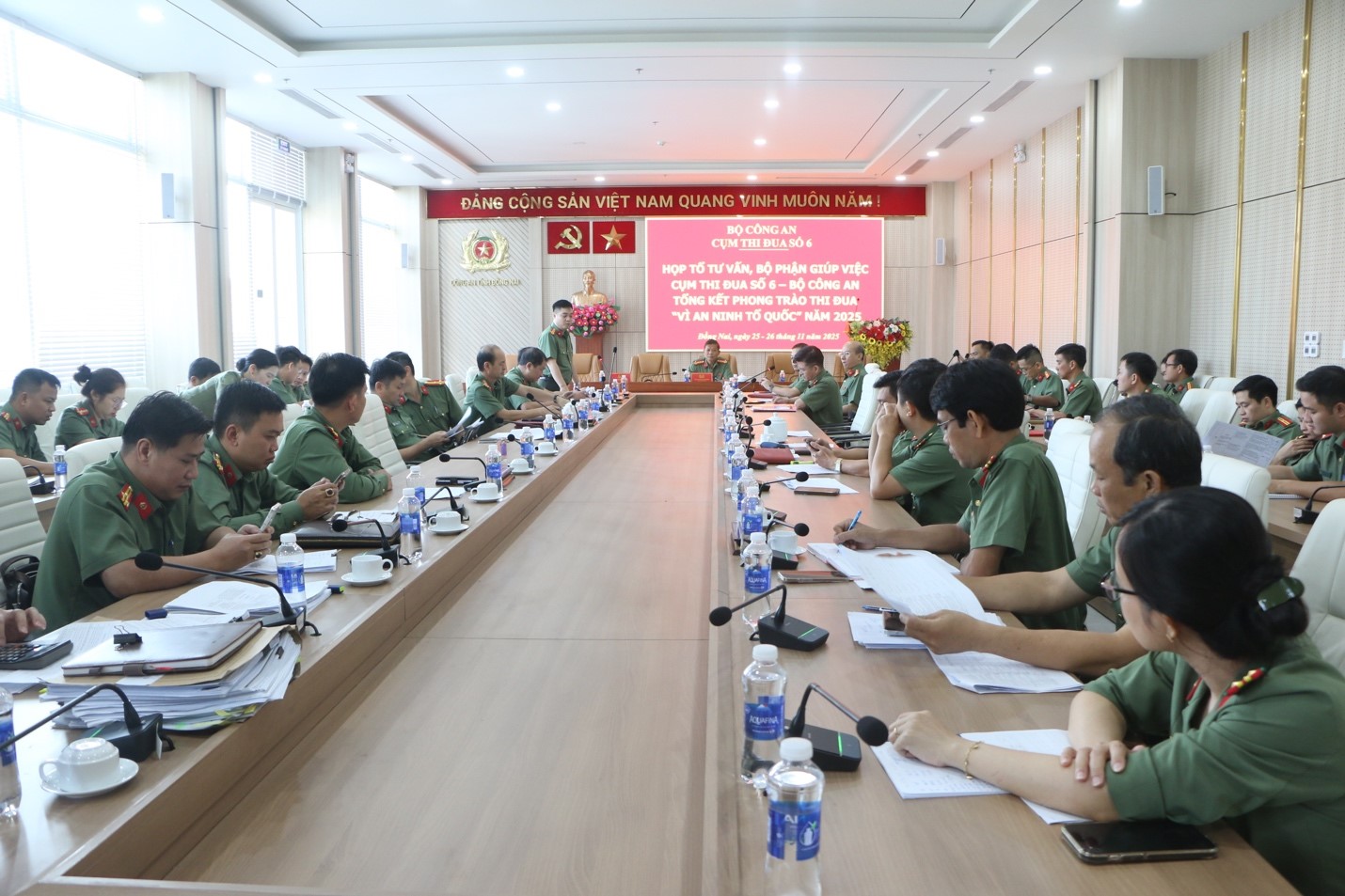 Để chuẩn bị cho Hội nghị tổng kết phong trào thi đua “Vì An ninh Tổ quốc” năm 2025 của Cụm thi đua số 6, Bộ Công an diễn ra thuận lợi, đạt được mục đích, yêu cầu đề ra, trong 2 ngày 25 và 26/11, Tổ tư vấn - Bộ phận giúp việc các đơn vị trong Cụm đã tổ chức họp nhằm thống nhất các nội dung, kết quả chấm điểm thi đua cho từng đơn vị. Đại tá Dương Văn Mạnh, Phó Giám đốc Công an tỉnh Đồng Nai chủ trì cuộc họp.