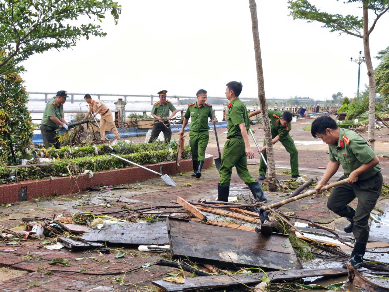 Xuyên suốt những ngày qua, cán bộ, chiến sĩ Công an tỉnh Đồng Nai đã phát huy cao nhất tinh thần “Vì Nhân dân phục vụ”, không ngơi nghỉ để hỗ trợ đồng bào vực dậy sau cơn lũ dữ. Sau khi dọn dẹp vệ sinh trên địa bàn phường, tổ công tác liền di chuyển đến những khu vực khó khăn, xã miền núi vùng sâu vùng xa của tỉnh Đăk Lăk. “Ngoài việc dọn dẹp đường sá, chúng tôi tập trung vệ sinh các khu vực trường học, nhất là các điểm trường tiểu học, mầm non để các em học sinh có thể nhanh chóng được đến trường”, Đại uý Thái Ngô Hiếu nói. Sự có mặt của lực lượng Công an như điểm tựa vững vàng, nâng đỡ tinh thần để người dân thắp lên niềm tin giữa những ngày nước lũ.