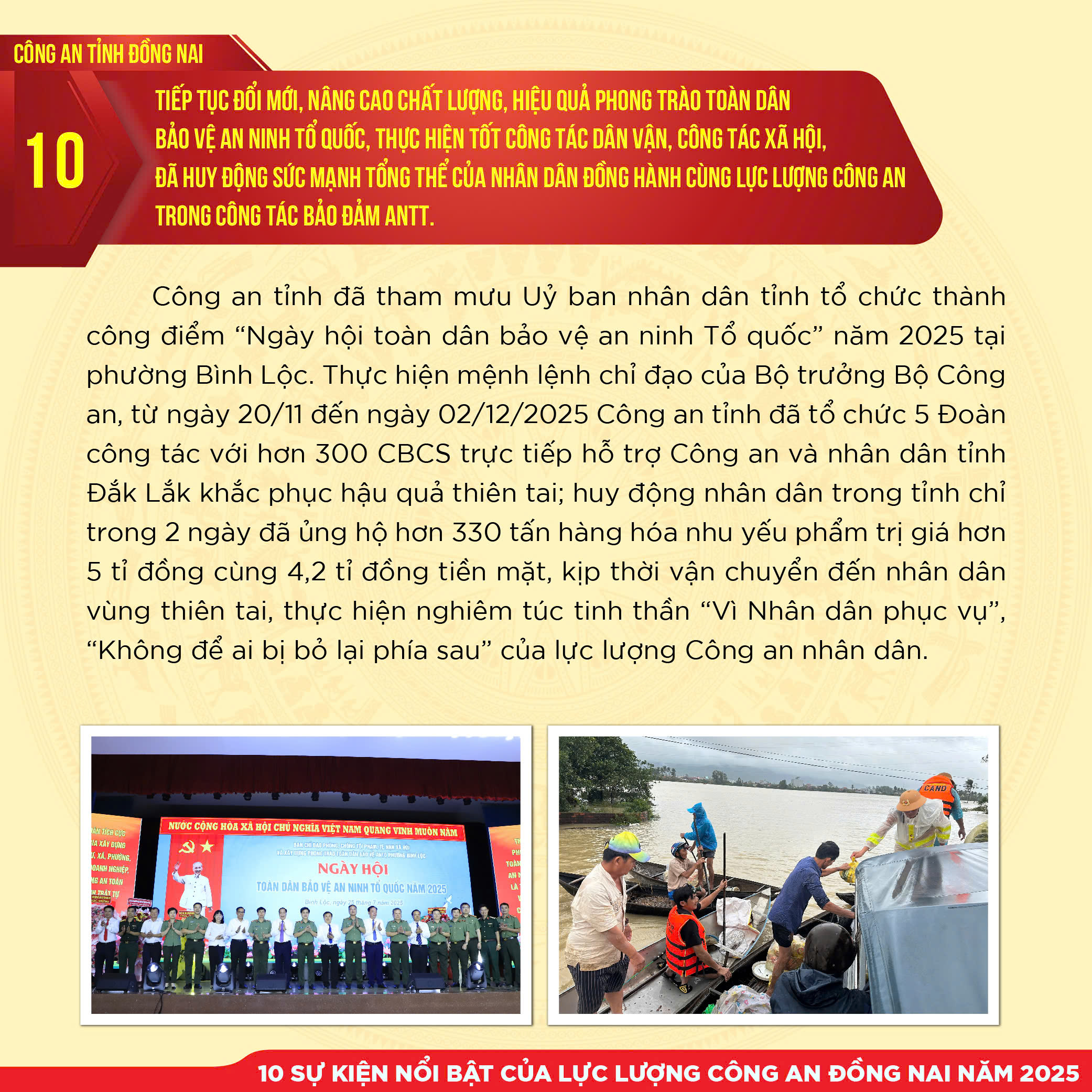 Công an tỉnh Đồng Nai trân trọng thông tin tới quý cơ quan, doanh nghiệp và nhân dân 10 sự kiện nổi bật của lực lượng Công an tỉnh Đồng Nai trong năm 2025.