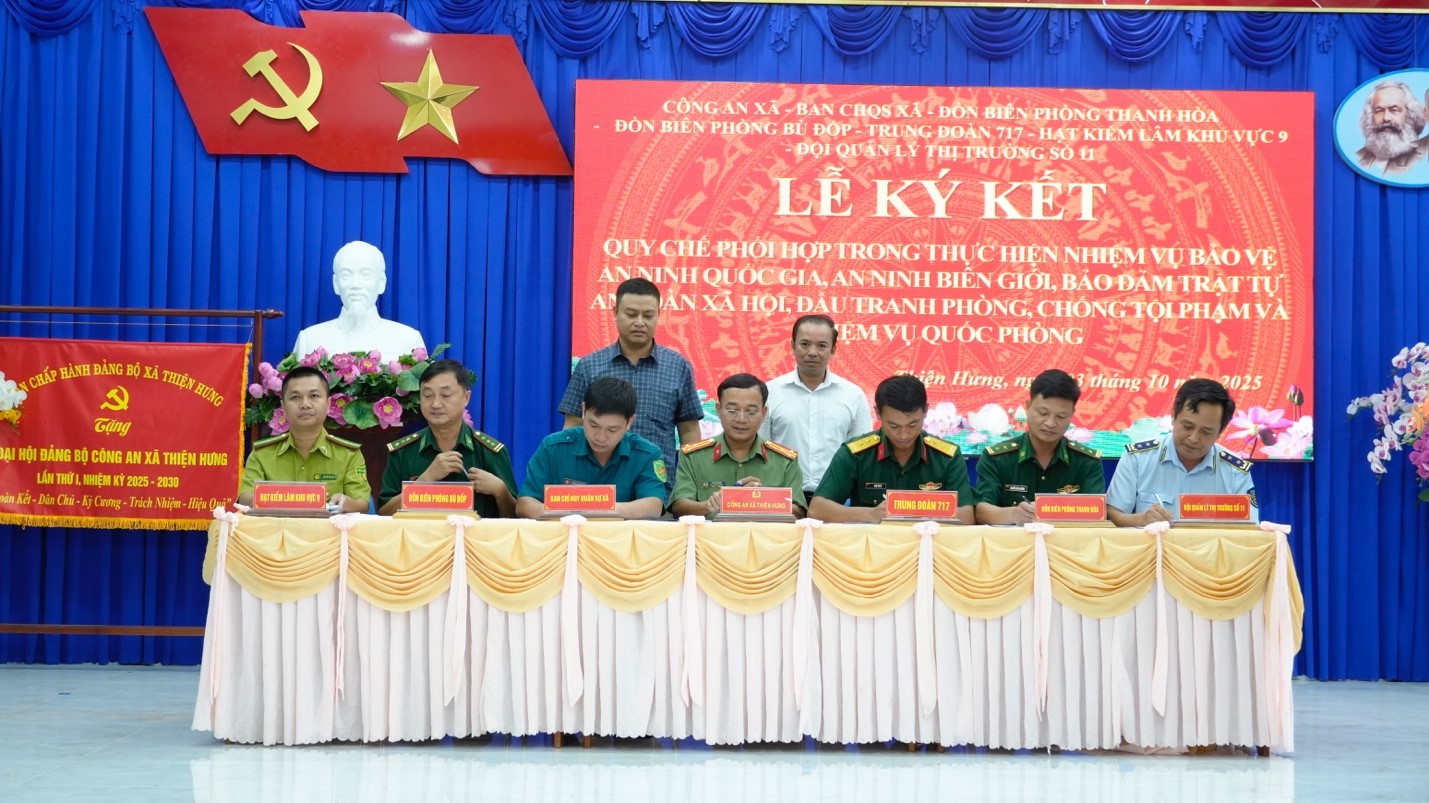Công an xã Thiện Hưng phối hợp với các đơn vị ký kết quy chế phối hợp trong thực hiện nhiệm vụ bảo vệ an ninh quốc gia, an ninh biên giới, bảo đảm trật tự an toàn xã hội, đấu tranh phòng, chống tội phạm và nhiệm vụ quốc phòng