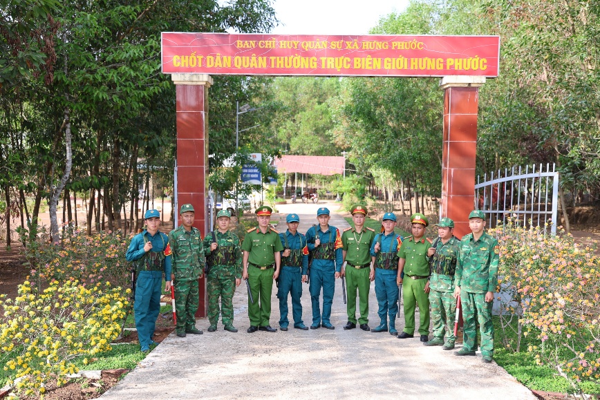 Trong những ngày diễn ra Đại hội Đảng, xã Hưng Phước duy trì 02 chốt dân quân biên giới, mỗi chốt bố trí 100% lực lượng thường trực, thực hiện chế độ trực 24/24 giờ. Lực lượng dân quân ăn ở tập trung tại chốt, thường xuyên tuần tra, kiểm soát đường biên, mốc giới, phối hợp nắm chắc tình hình địa bàn, kịp thời phát hiện và xử lý các tình huống phát sinh, không để bị động, bất ngờ.