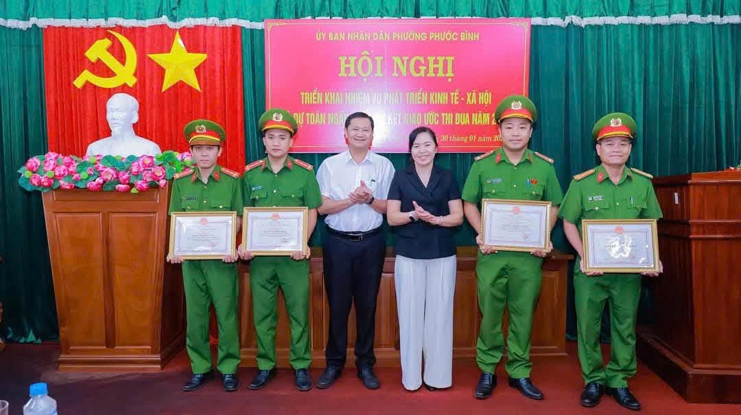 Với những kết quả xuất sắc của lực lượng Công an phường Phước Bình đã góp phần quan trọng trong công tác bảo đảm trật tự an toàn xã hội, vì sự bình yên của nhân dân. Để ghi nhận và khích lệ tinh thần của CBCS Công an phường, Uỷ ban nhân dân phường Phước Bình đã quyết định khen thưởng đột xuất cho tập thể Công an phường và 5 cá nhân có thành tích xuất sắc.