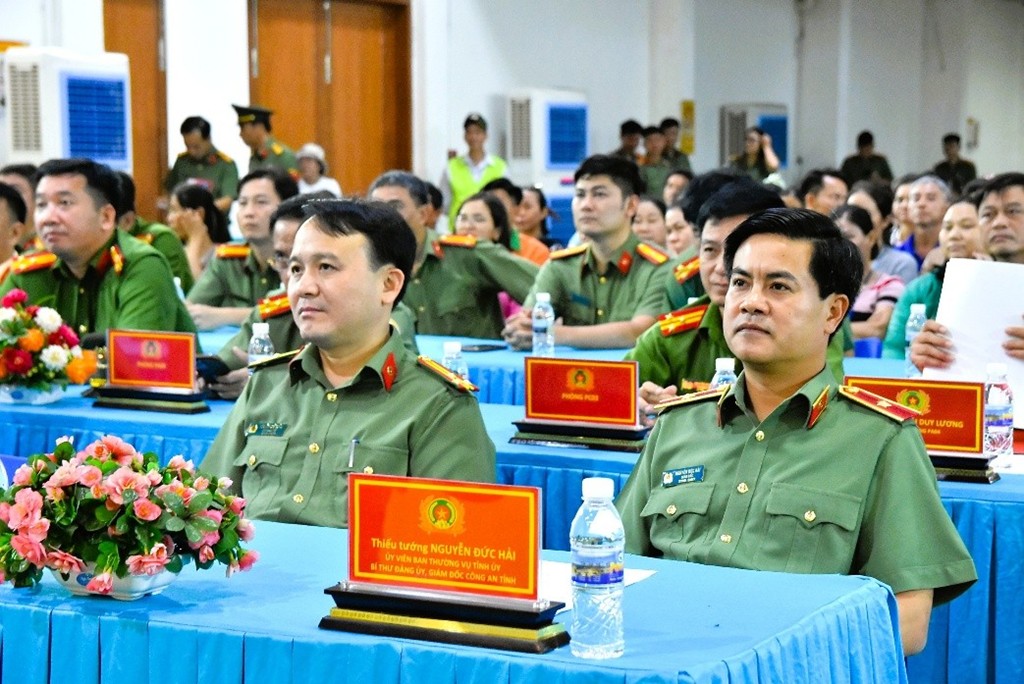 Thiếu tướng Nguyễn Đức Hải, Ủy viên Ban Thường vụ Tỉnh ủy, Giám đốc Công an tỉnh và Thượng tá Nguyễn Chí Toàn, Phó Giám đốc Công an tỉnh tham dự chương trình