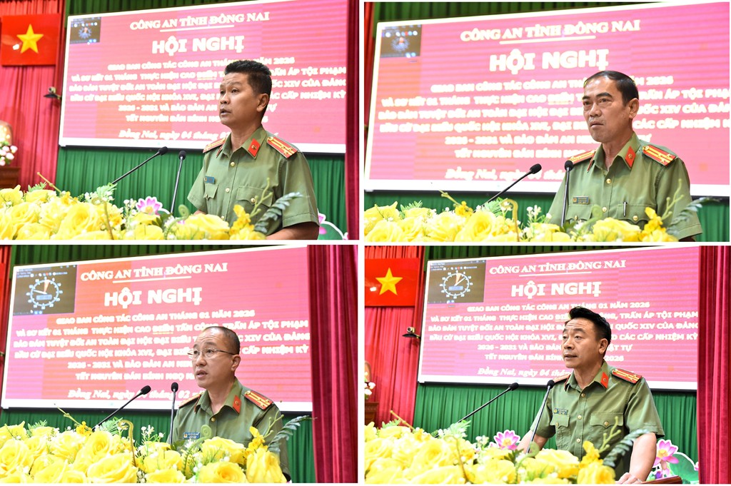 Phát biểu chỉ đạo tại Hội nghị, Thiếu tướng Nguyễn Đức Hải khẳng định, ngay từ những ngày đầu, tháng đầu năm 2026, lực lượng Công an tỉnh Đồng Nai đã thể hiện rõ tinh thần chủ động, quyết liệt và trách nhiệm cao trong thực hiện nhiệm vụ bảo đảm an ninh, trật tự. Việc đồng loạt ra quân thực hiện Cao điểm tấn công, trấn áp tội phạm đã tạo khí thế mạnh mẽ, lan tỏa sâu rộng trong xã hội, góp phần giữ vững ổn định chính trị, trật tự an toàn xã hội, phục vụ hiệu quả nhiệm vụ phát triển kinh tế - xã hội và đối ngoại của địa phương. Đồng chí Giám đốc Công an tỉnh yêu cầu toàn lực lượng tiếp tục phát huy tinh thần đoàn kết, kỷ luật, bản lĩnh; triển khai đồng bộ, quyết liệt các mặt công tác ngay từ đầu năm, trọng tâm là đấu tranh hiệu quả với tội phạm hình sự nguy hiểm, tội phạm có tổ chức, ma túy, kinh tế, tham nhũng, môi trường, cờ bạc, tín dụng đen, pháo nổ và tội phạm công nghệ cao; chủ động nắm chắc tình hình, quản lý chặt địa bàn, đối tượng, không để bị động, bất ngờ. Đồng thời, nâng cao chất lượng tiếp nhận, giải quyết tố giác, tin báo về tội phạm; đẩy nhanh tiến độ điều tra, xử lý án và truy bắt đối tượng truy nã; tăng cường hiệu lực công tác quản lý nhà nước về an ninh, trật tự, nhất là quản lý cư trú, căn cước công dân, PCCC và CNCH, bảo đảm trật tự an toàn giao thông, phục vụ tốt Nhân dân trong dịp Tết Nguyên đán Bính Ngọ 2026. Bên cạnh đó, đồng chí yêu cầu siết chặt kỷ luật, kỷ cương; chú trọng công tác xây dựng Đảng, xây dựng lực lượng Công an tỉnh trong sạch, vững mạnh; đề cao trách nhiệm nêu gương của người đứng đầu, kiên quyết xử lý nghiêm vi phạm, lấy hiệu quả công tác và sự chuyển biến thực chất về an ninh, trật tự làm thước đo đánh giá kết quả thực hiện nhiệm vụ năm 2026.