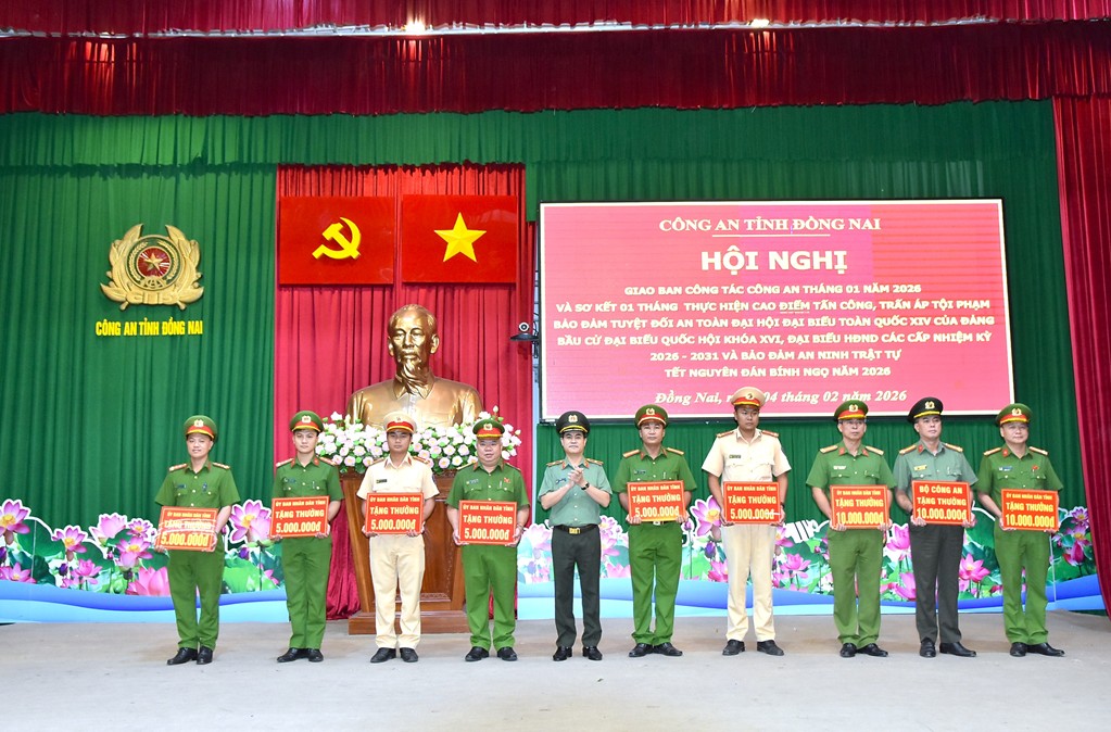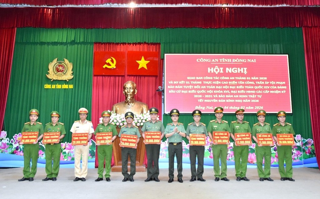 Trong tháng 01/2026, phong trào thi đua “Vì an ninh Tổ quốc” được đẩy mạnh; nhiều tập thể, cá nhân lập thành tích xuất sắc được các cấp khen thưởng, góp phần xây dựng hình ảnh người chiến sĩ Công an Đồng Nai bản lĩnh, nhân văn, vì Nhân dân phục vụ. Đảng ủy, Ban Giám đốc Công an tỉnh đã ghi nhận, biểu dương các đơn vị đạt kết quả nổi bật, nhất là Công an các xã, phường đạt chỉ tiêu đột phá trong đợt cao điểm.